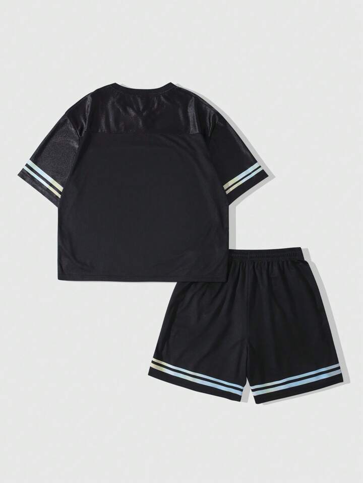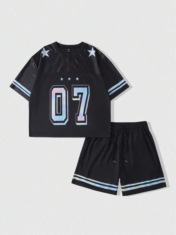 Prep Men's Colorful Number Pattern Glossy Fabric Splice Mesh Activewear T-Shirt Set