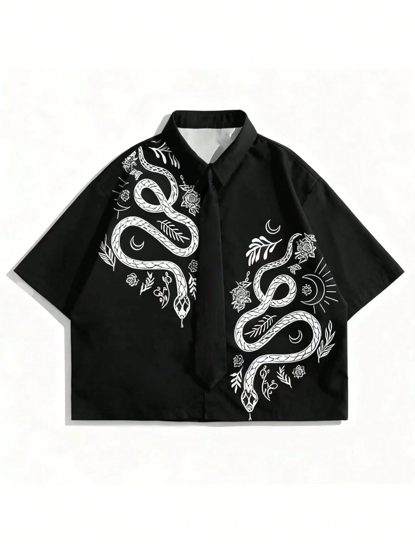 Prep Men's Contrast Color Snake Print Dark Academia Style Short Sleeve Shirt