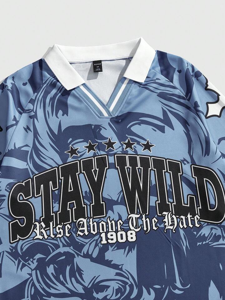 Prep Men's Jersey Casual Cartoon Letter Print Short Sleeve Polo Shirt