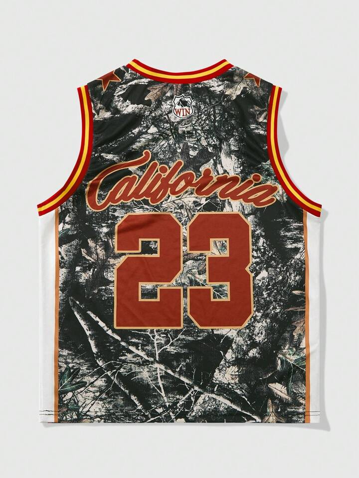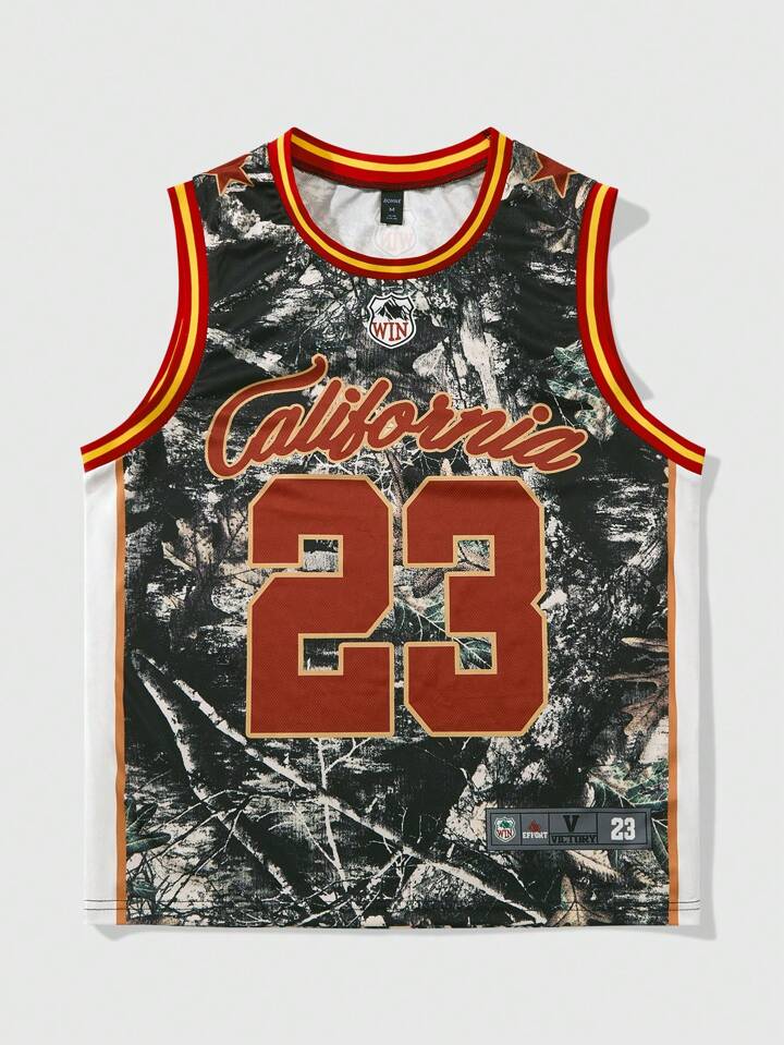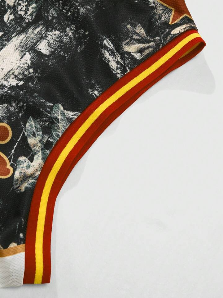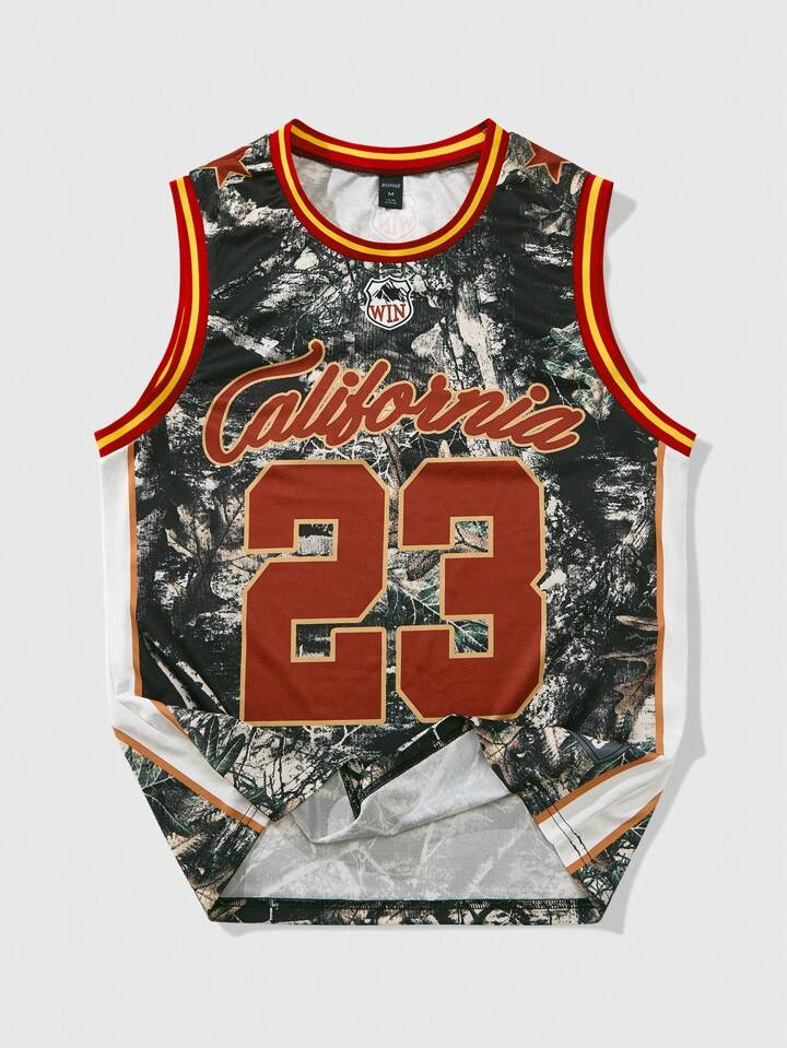 Prep Men's Letter & Branch Print Round Neck Casual Tank Top