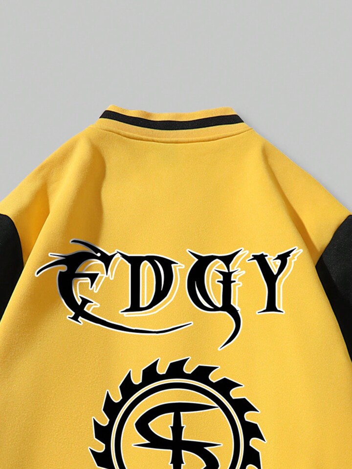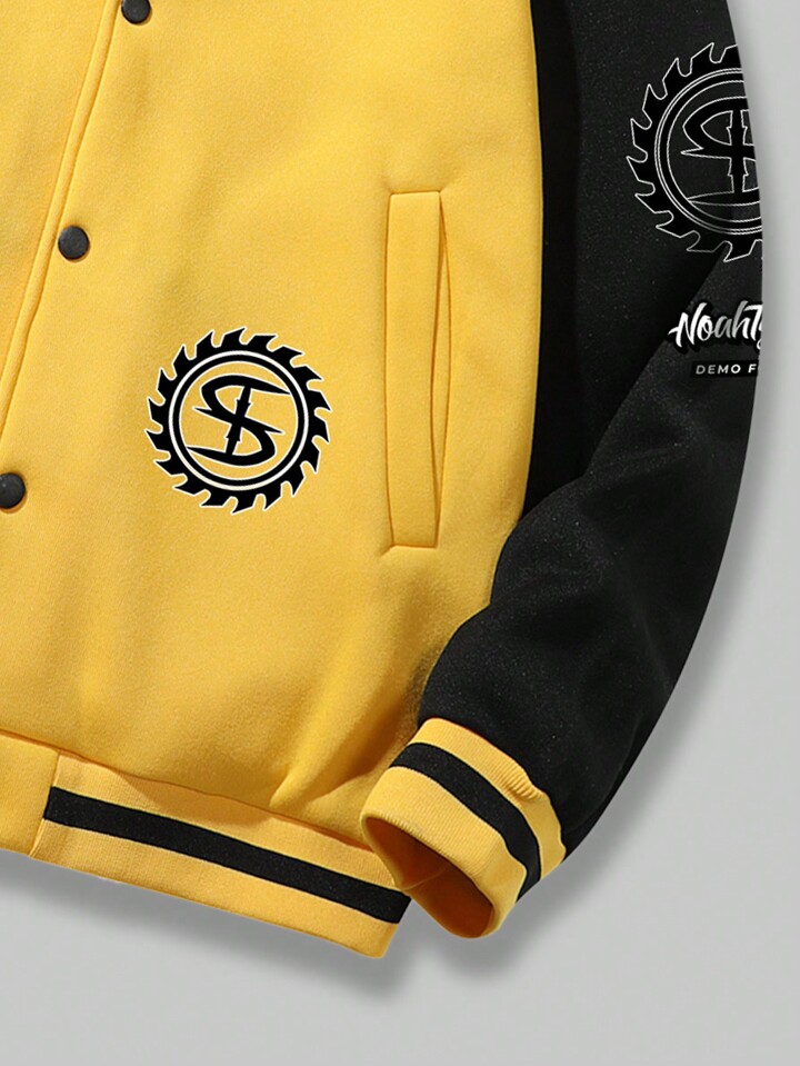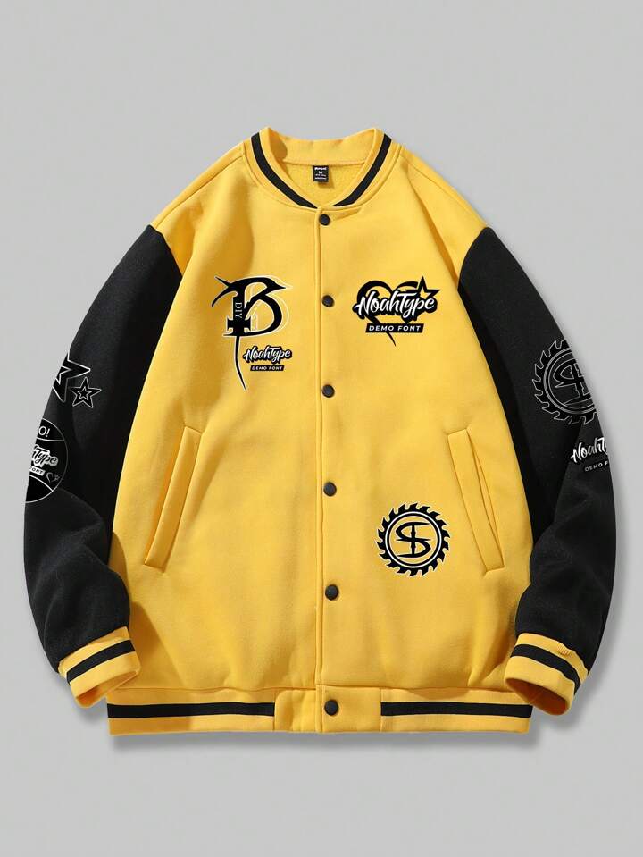 Prep Men's Letter Printed Color Block Baseball Jacket