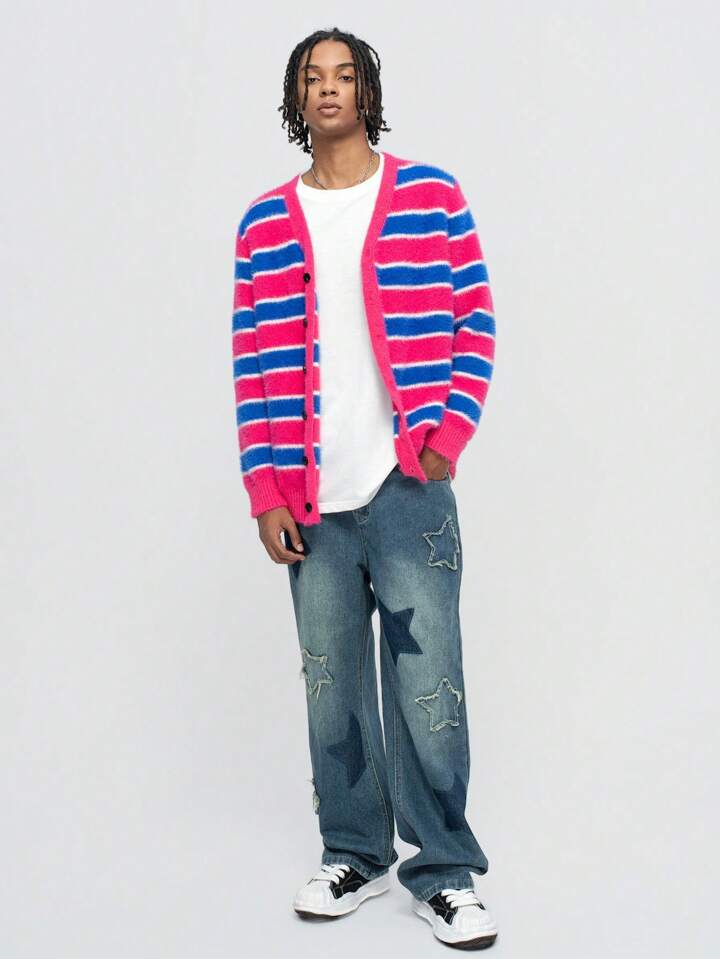 Prep Men's Loose Fit Casual Striped Long Sleeve Cardigan, Autumn/Winter