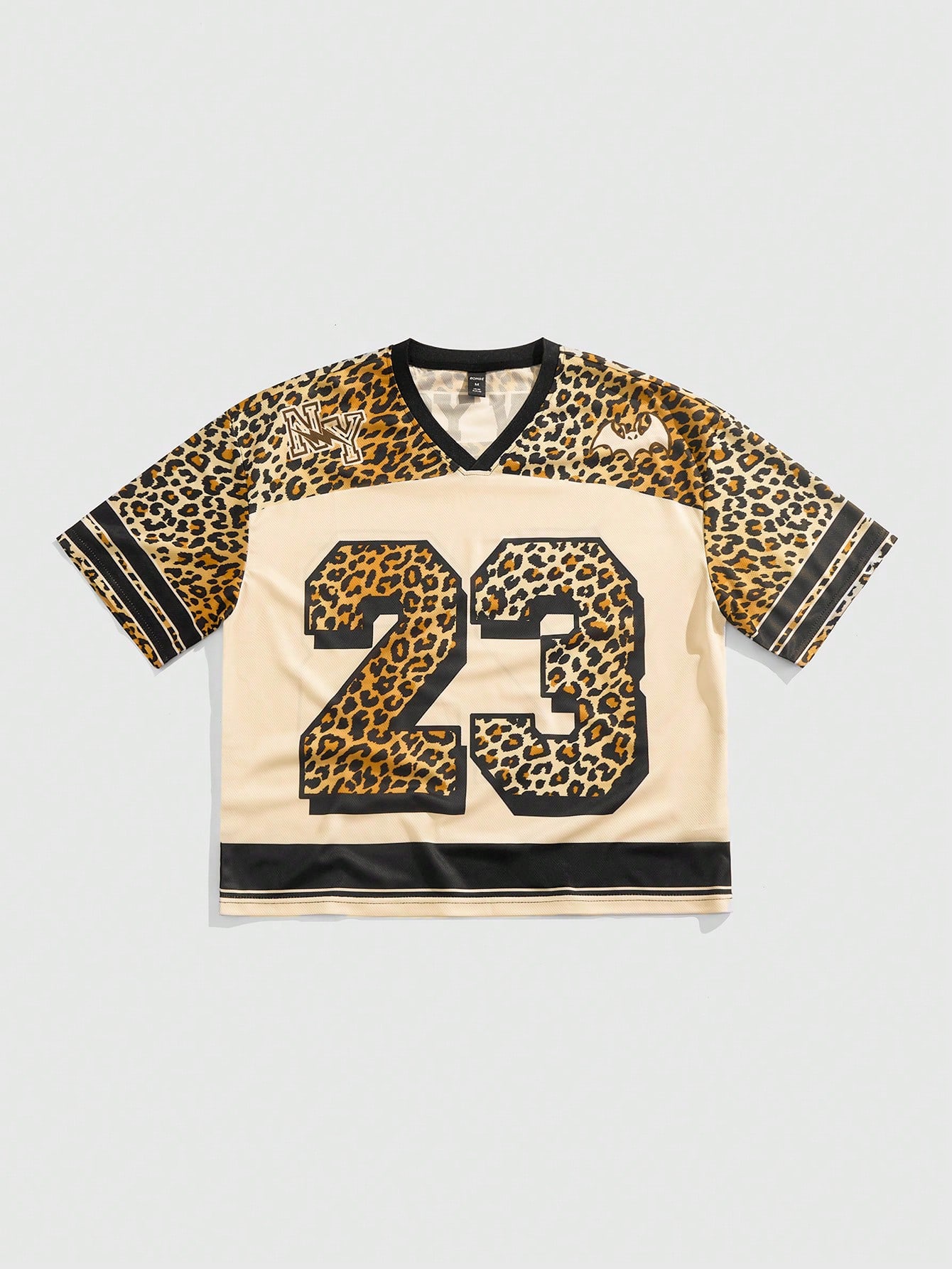 Prep Men's Mesh Panel Leopard Print V-Neck T-Shirt, Spring/Summer