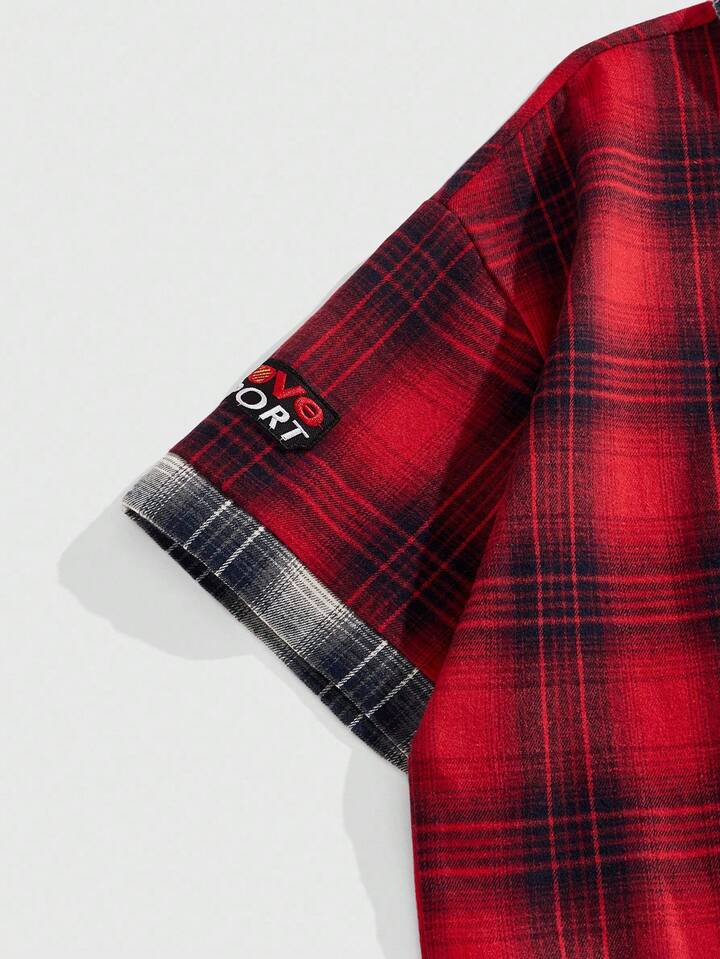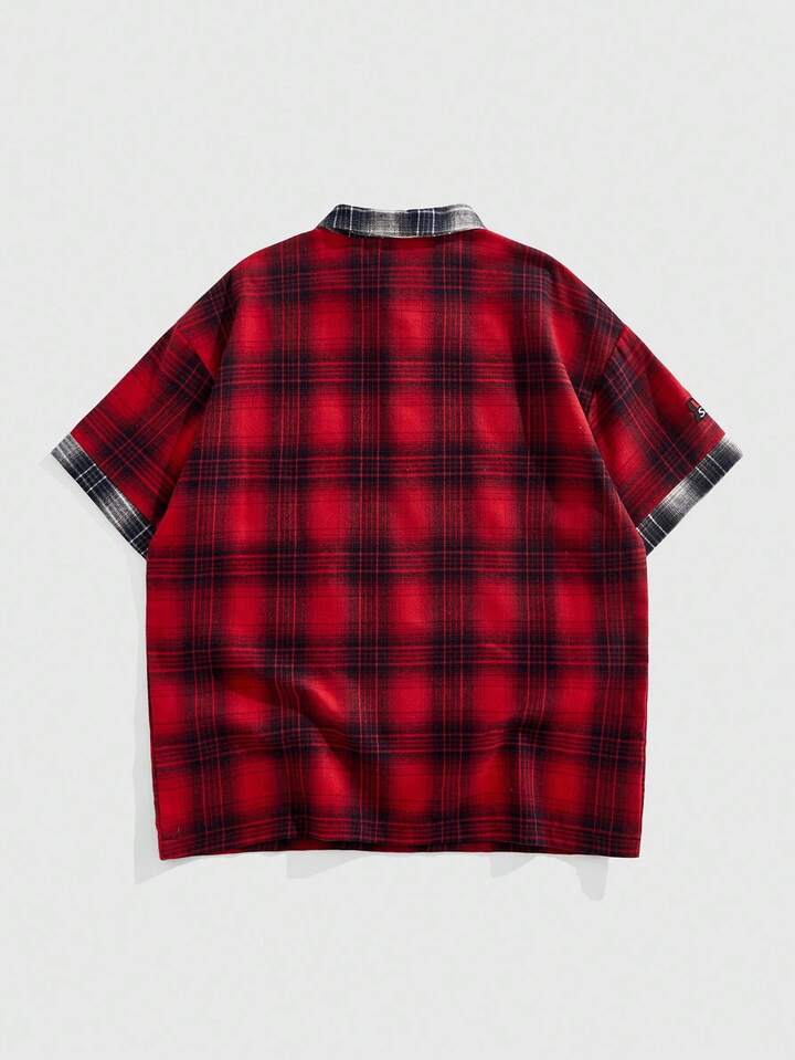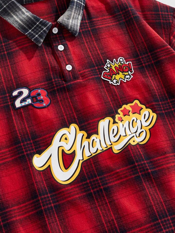 Prep Men's Patch Patchwork Plaid Print Polo Shirt, Emo