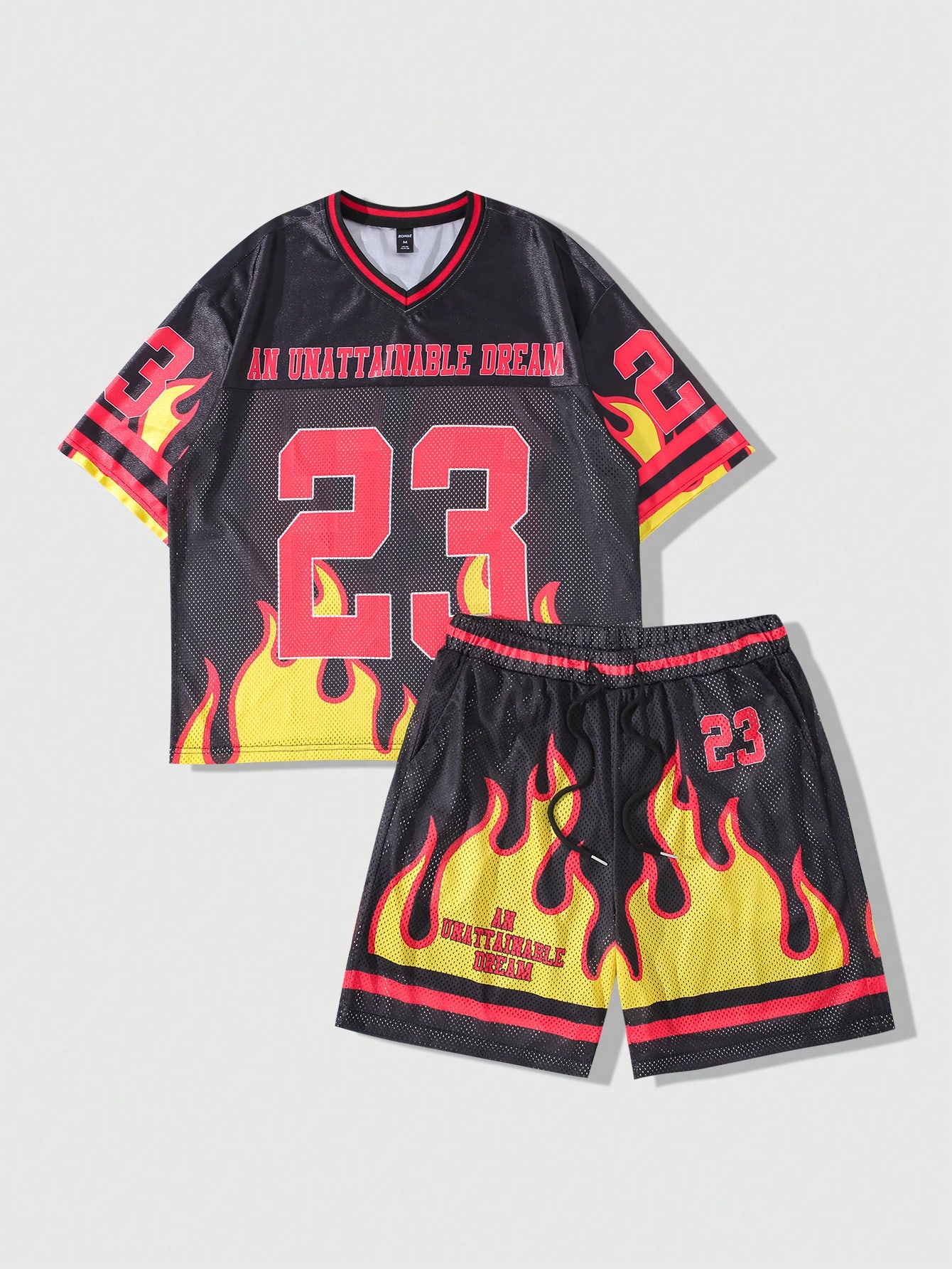 Men's Preppy Mesh Panel Sports Short Sleeve T-Shirt Set, Sports Jersey Set