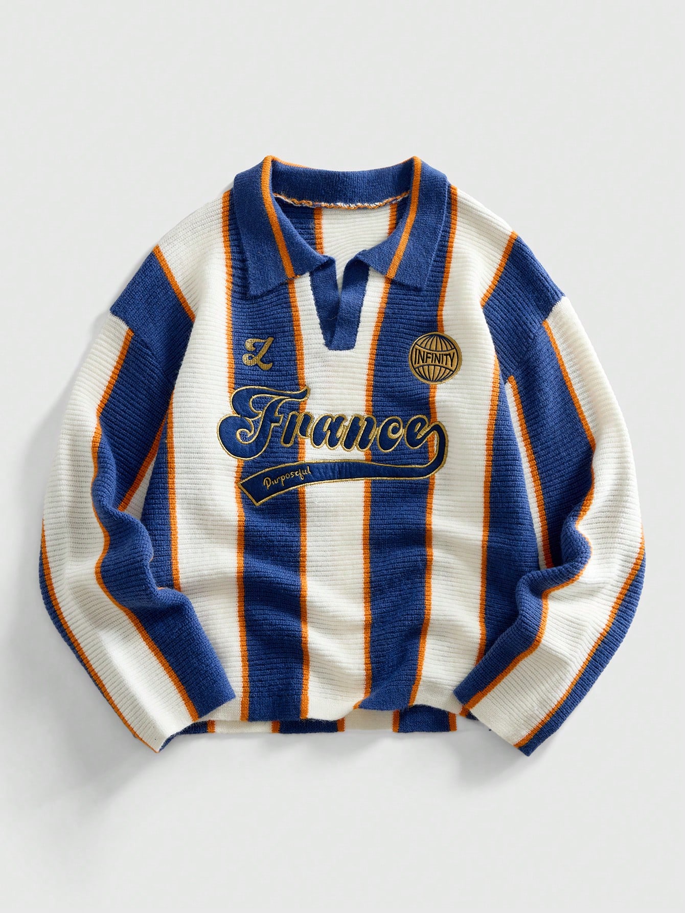 Men's Retro Collared Football Inspired Knit Sweater, Preppy Streetwear Style
