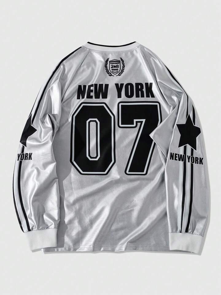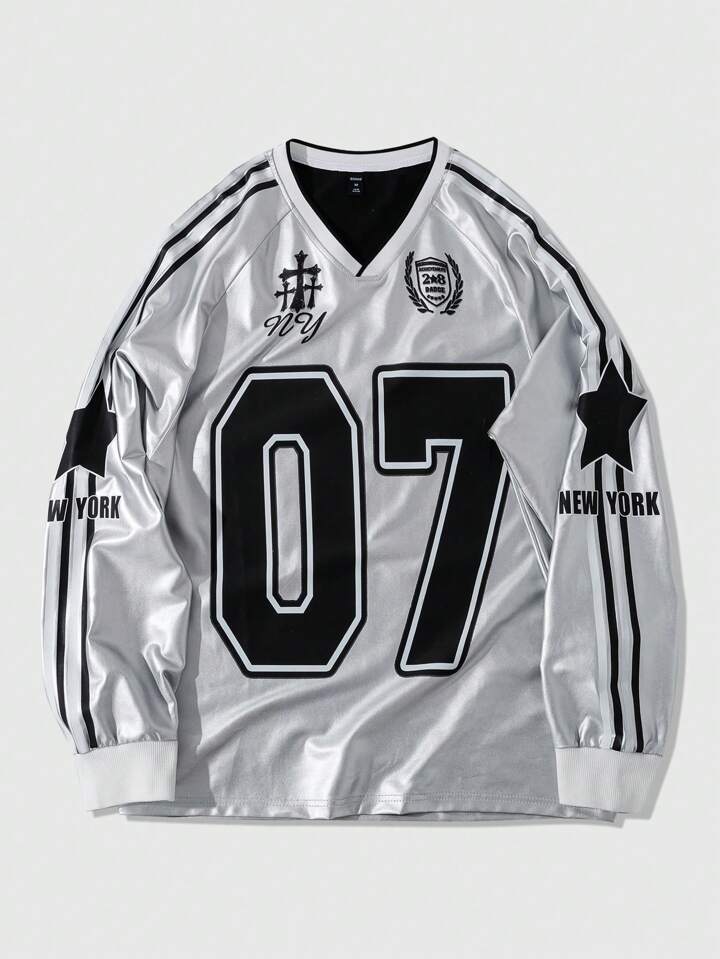Prep Men's Solid Color Patchwork V-Neck Long Sleeve Minimalist Graphic Print Sweatshirt