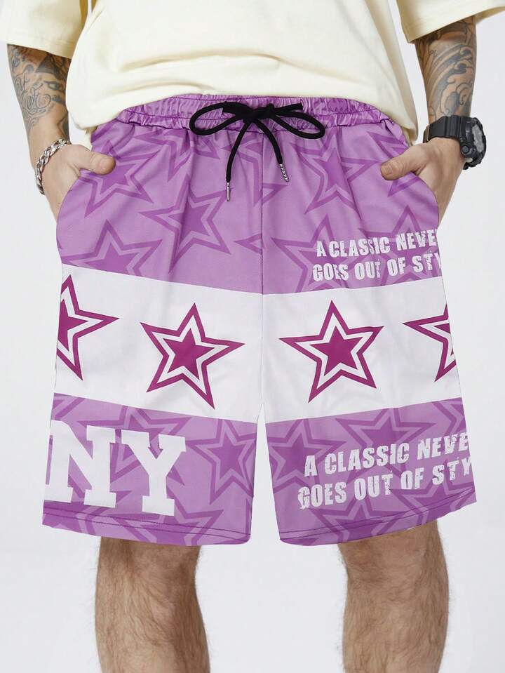 Prep Men's Star Printed Shorts, Suitable For Daily Wear In Spring And Summer
