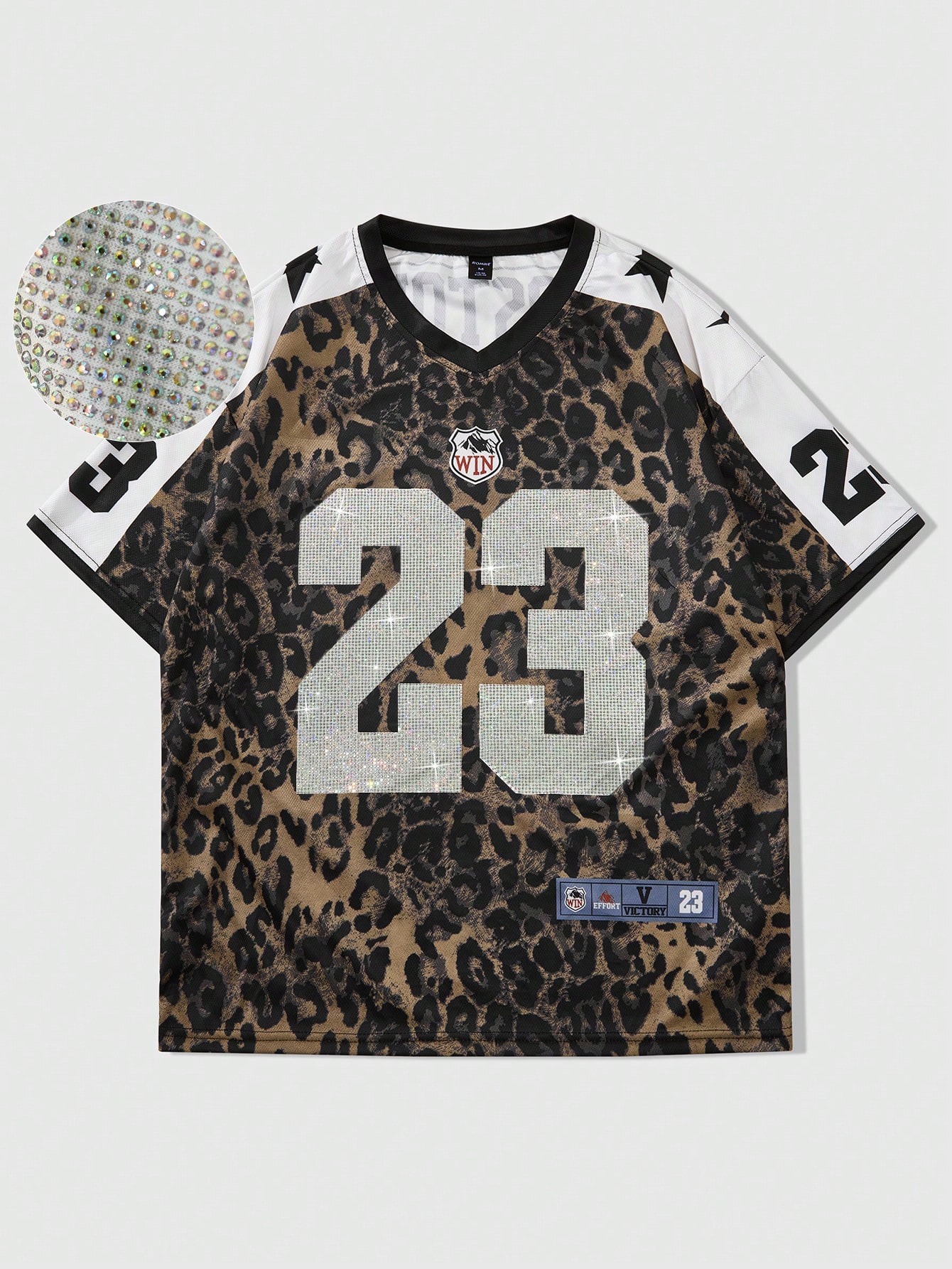 Prep Spring/Summer Casual Leopard Men'S Street Graphic, Vintage Number & Leopard Print Short Sleeve T-Shirt