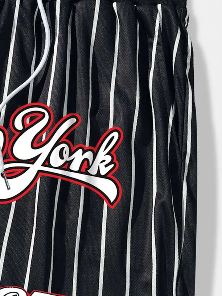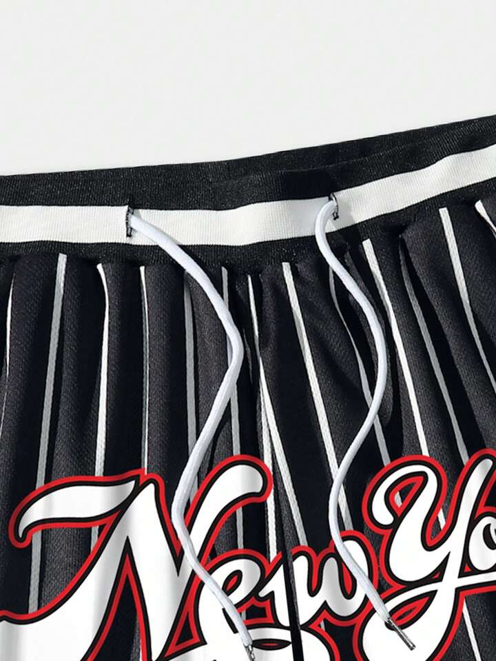 Prep Men's Summer Casual Color Block Striped Printed Drawstring Waist Mesh Shorts, School