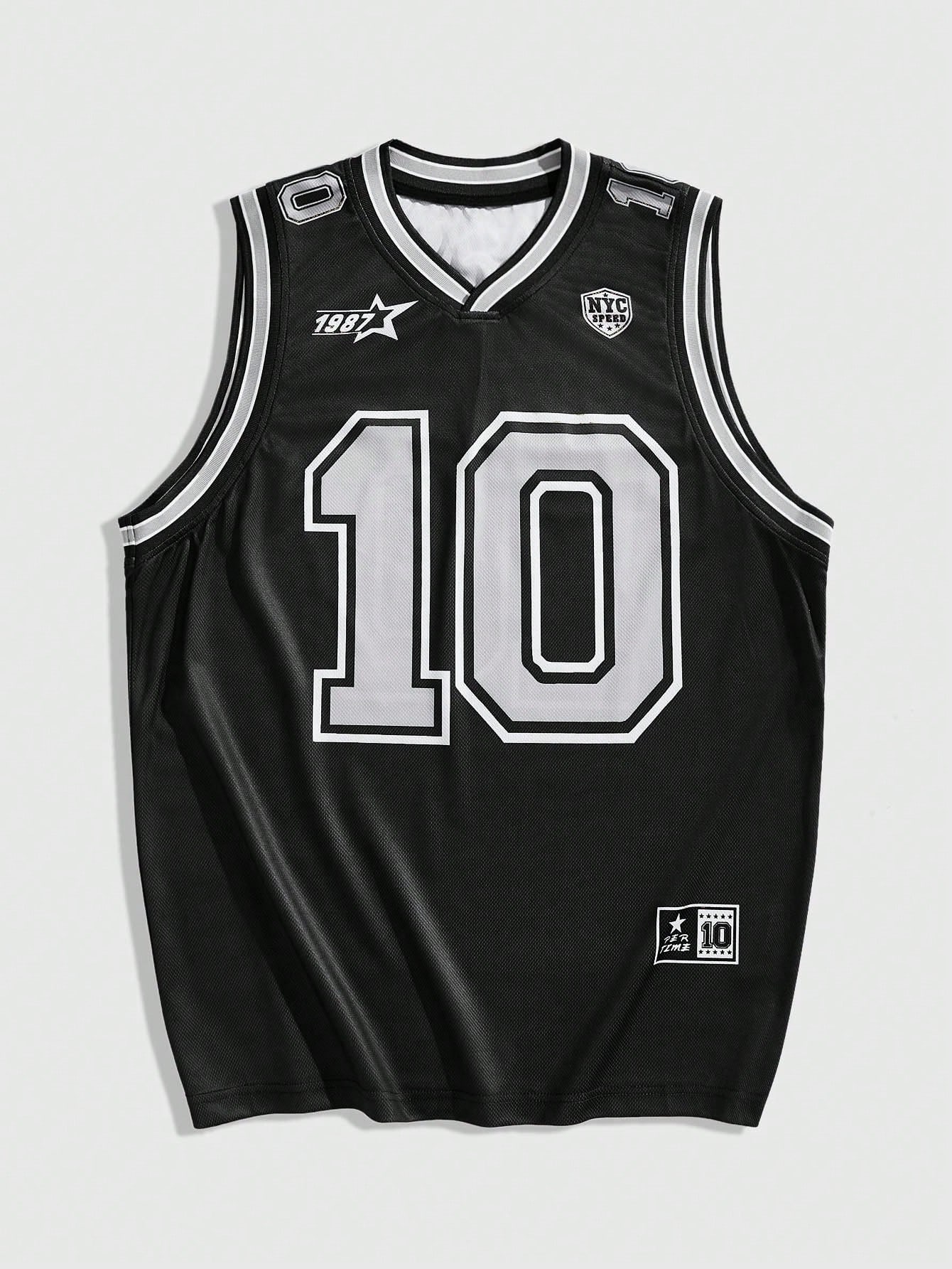 Prep Men's Summer Casual Contrast Trim Numeral Print Tank Top
