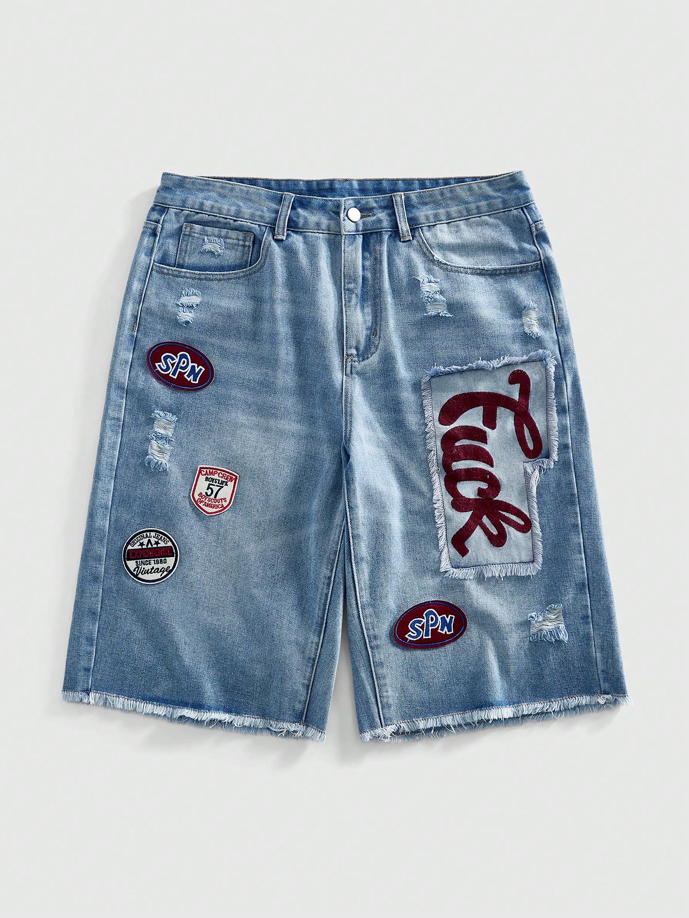 Prep Patch Distressed Casual Loose Fit Men's Denim Shorts
