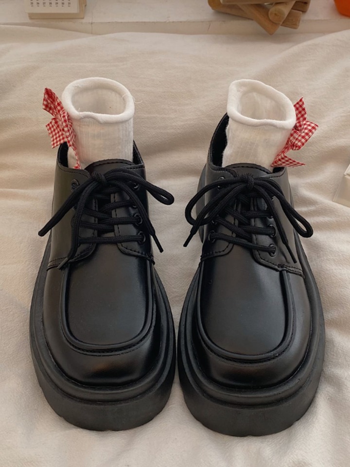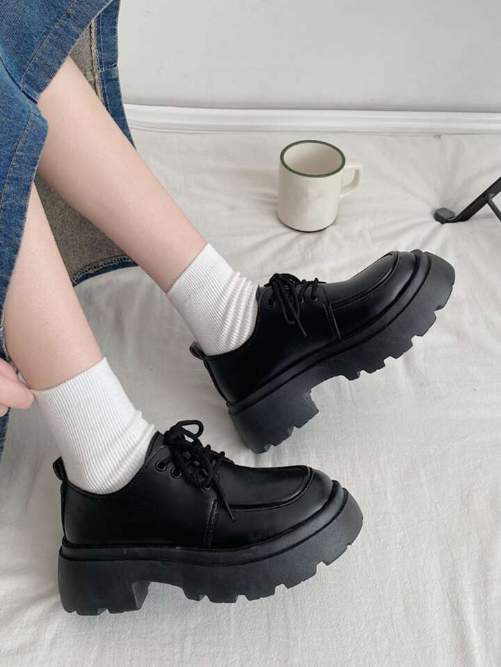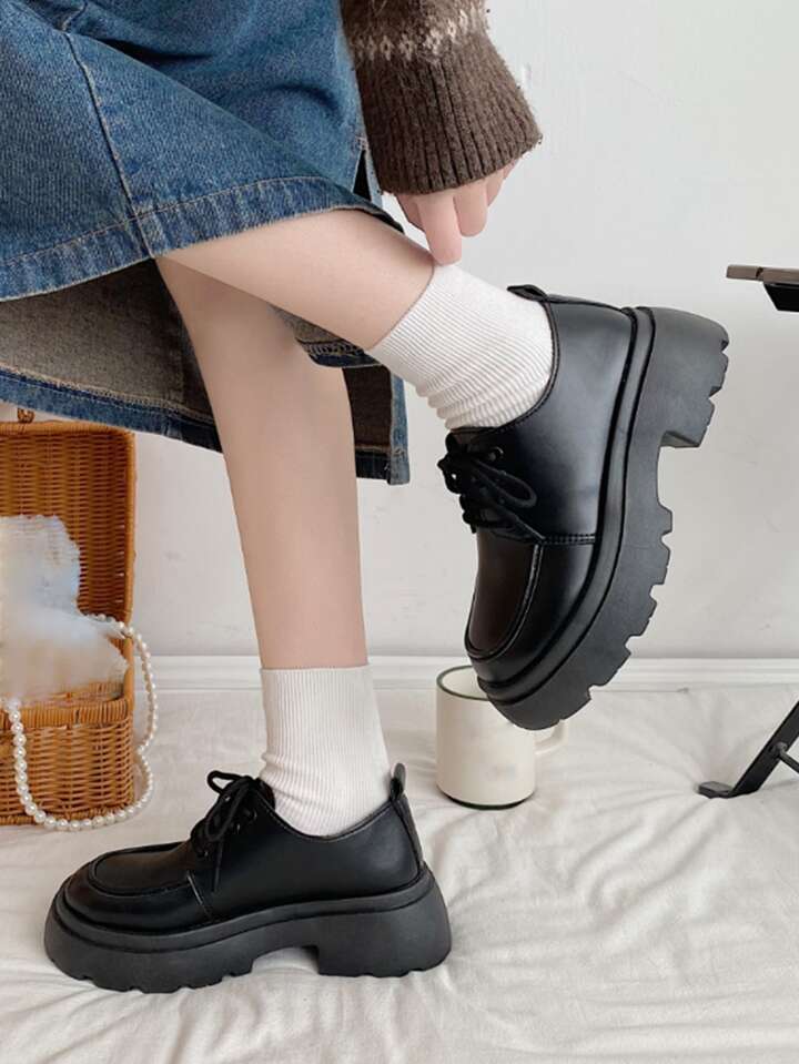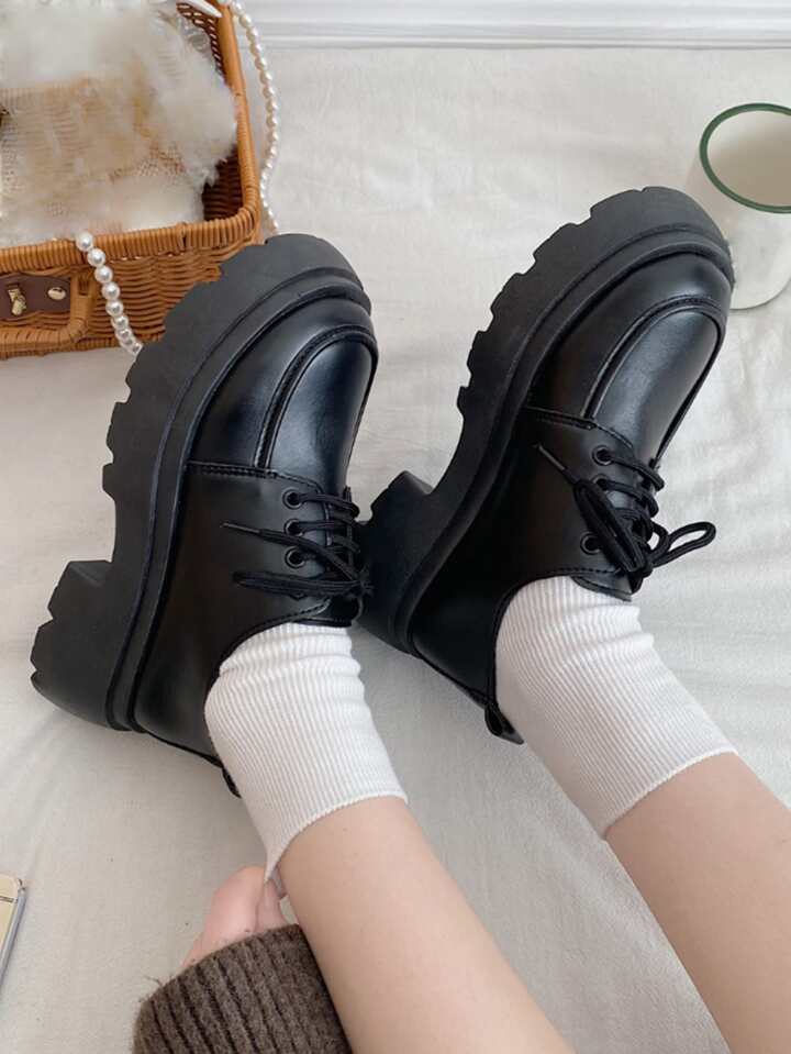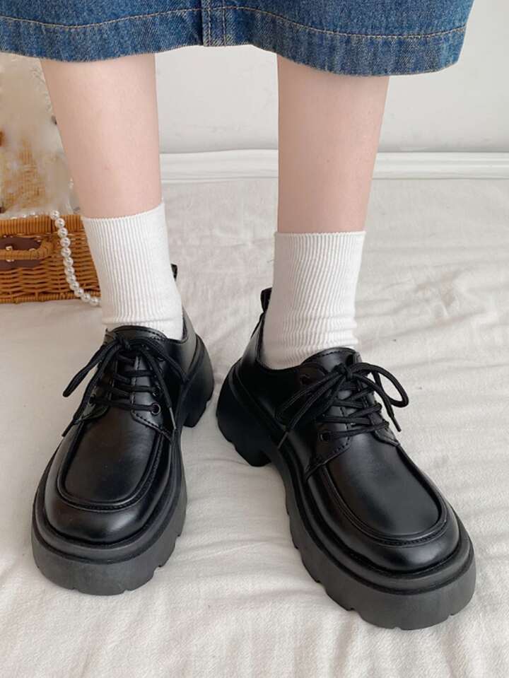 Preppy Oxford Shoes For Women, Lace-up Front Flatform Wedges Shoes