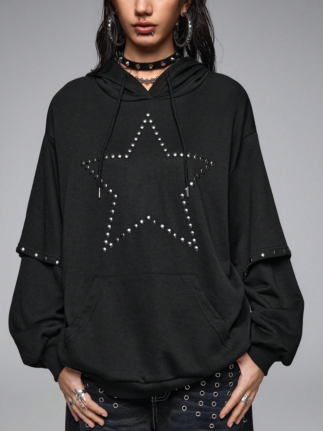 Grunge Punk Punk Grunge Heart Studded Hoodie