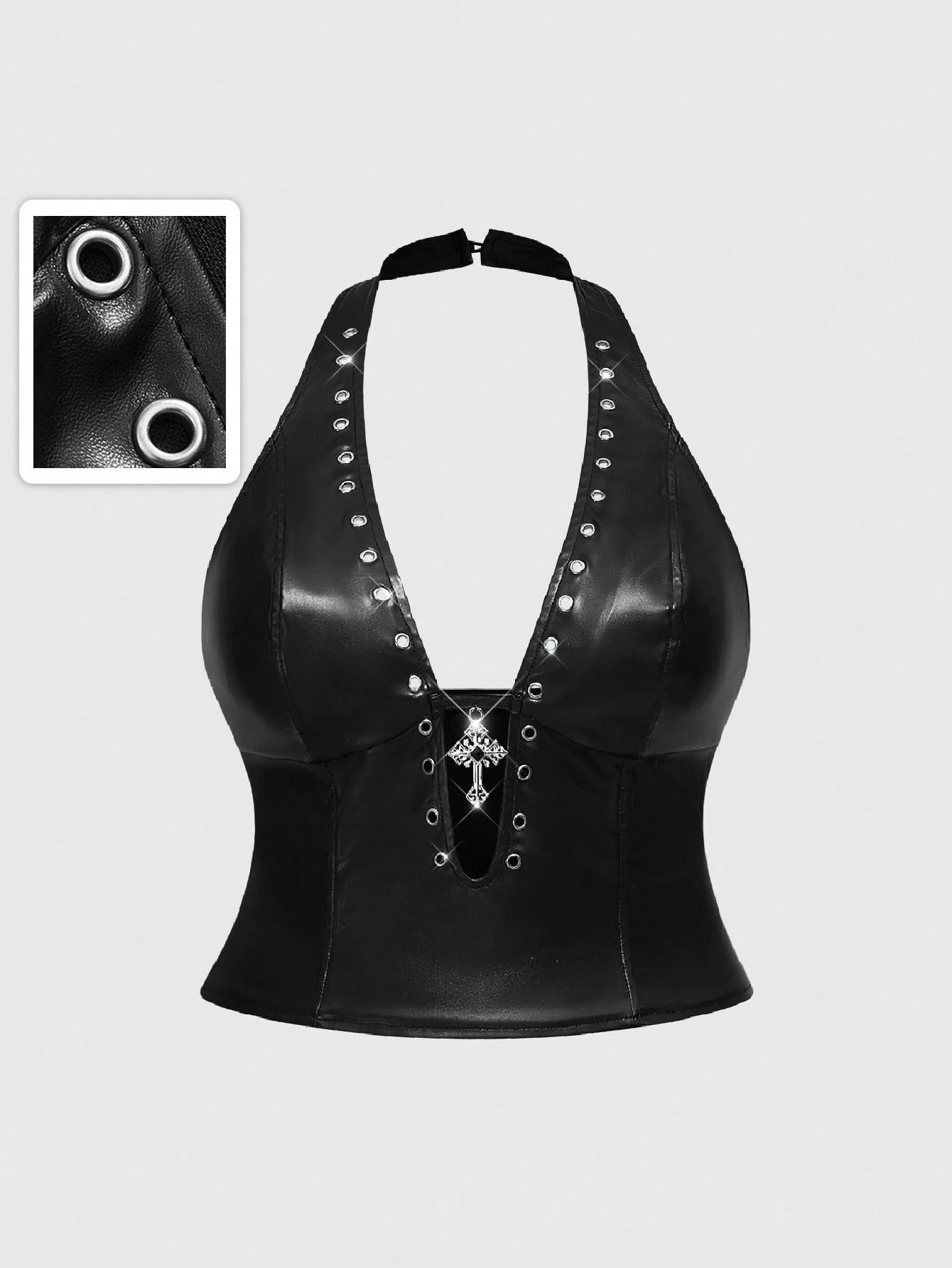 Grunge Punk Punk Metal Grommet Design Sexy Deep V Cross Pendant PU Bodycon Plus Size Camisole And Tank Top