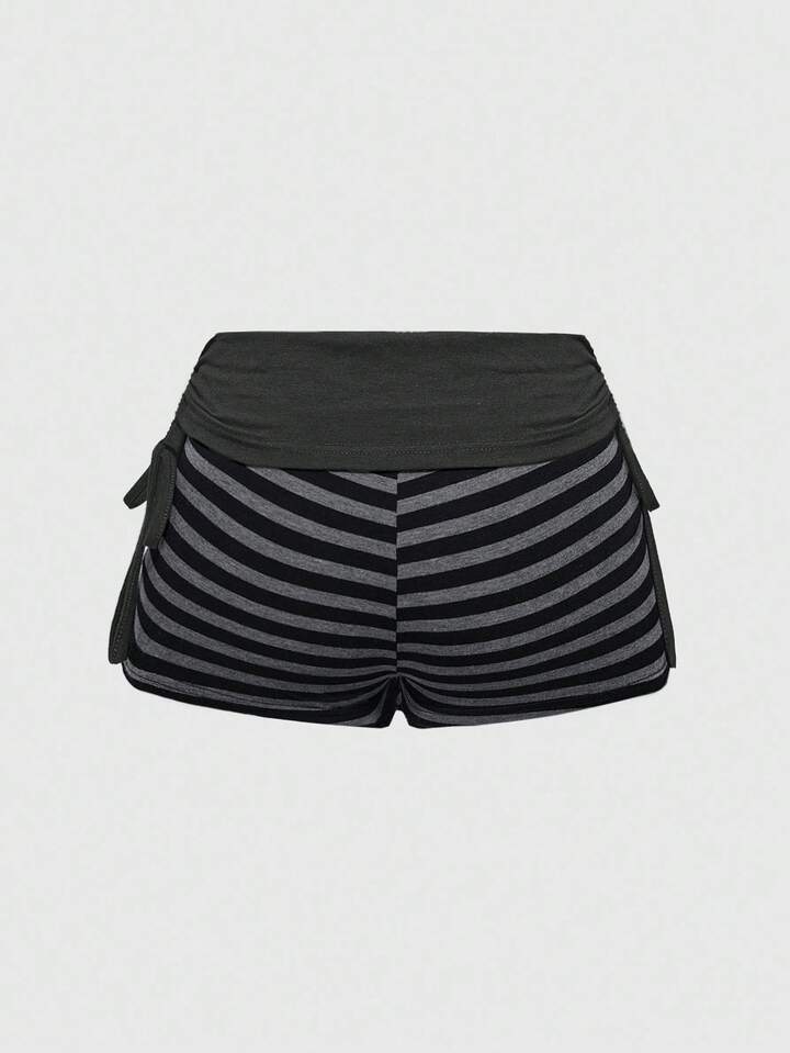 Punk Rock Cute Retro Music Festival Striped Contrast Color Drawstring Super Short Women Shorts