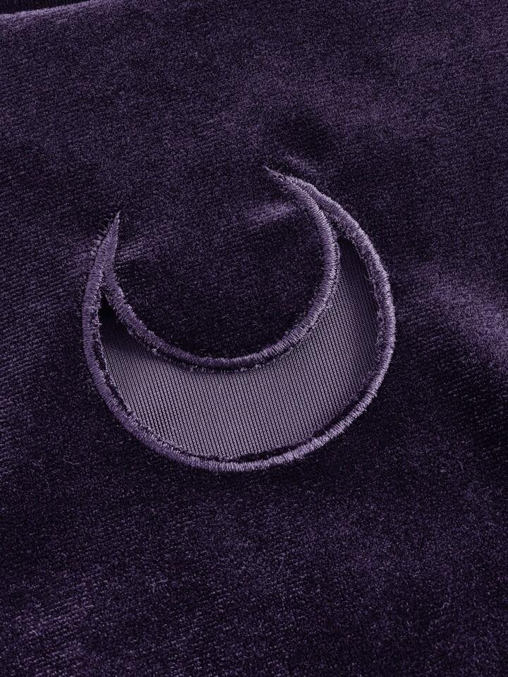 Purple Gothic Moon Embroidered Women High Neck Flare Sleeve Top