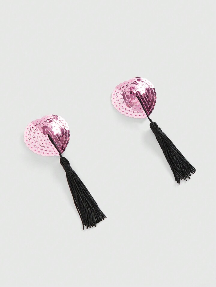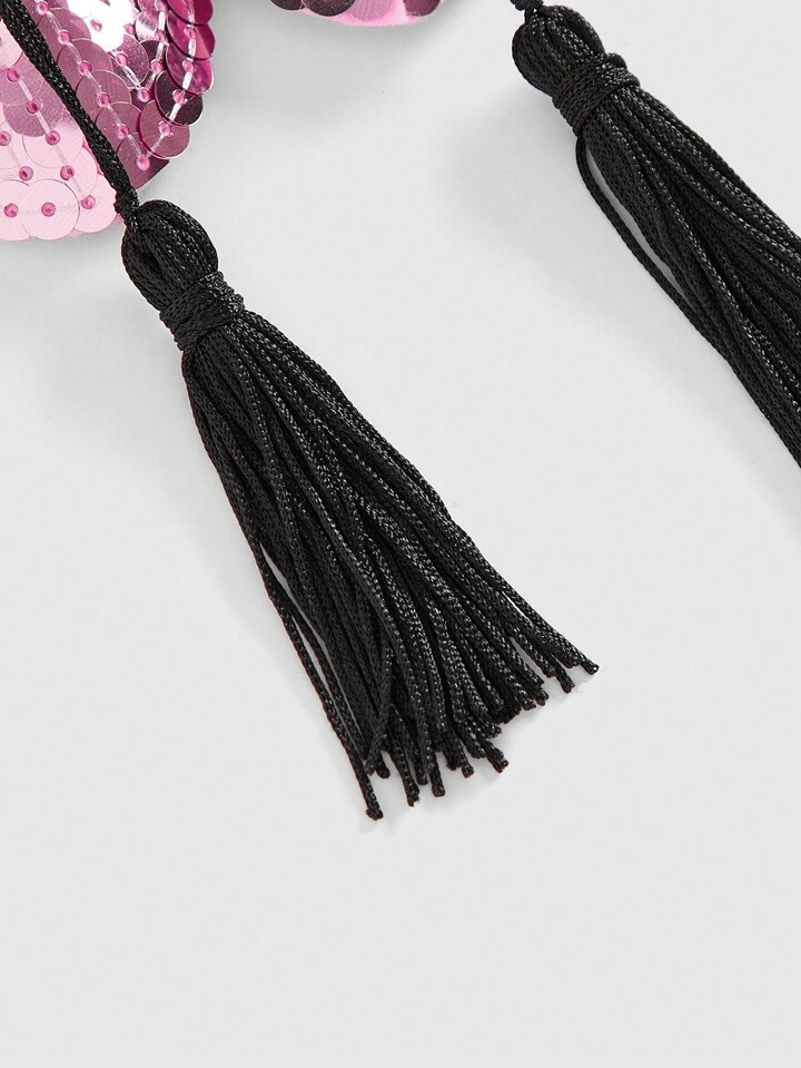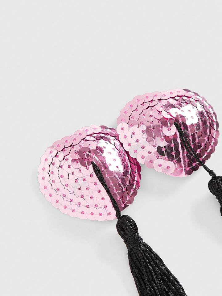 ROMWE Avant 1 Pair Glitter Heart Tassel Nipple Cover/Pasties