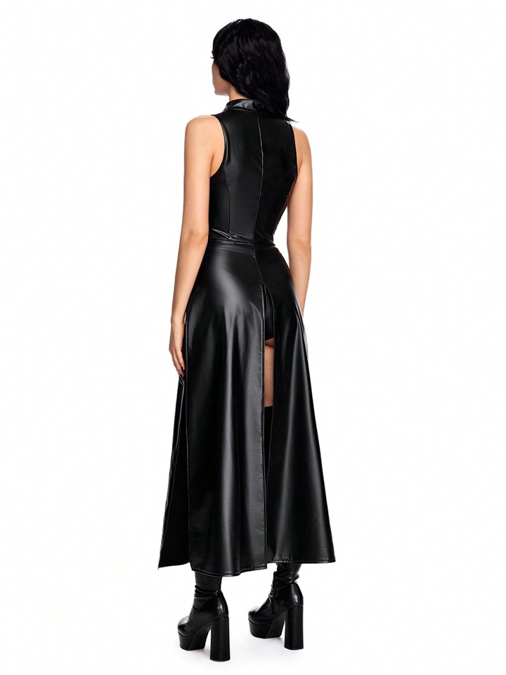 ROMWE Avant 2pcs Sexy PU Hooded Cloak & Mini Shorts Halloween Cosplay Costume Set