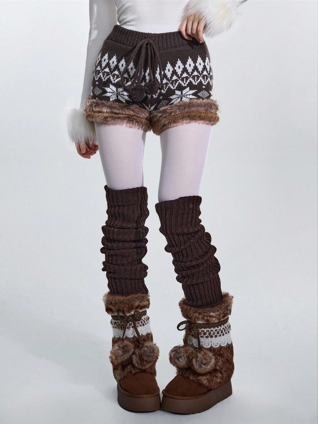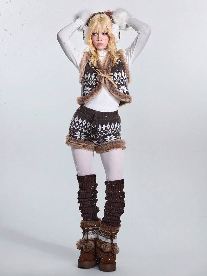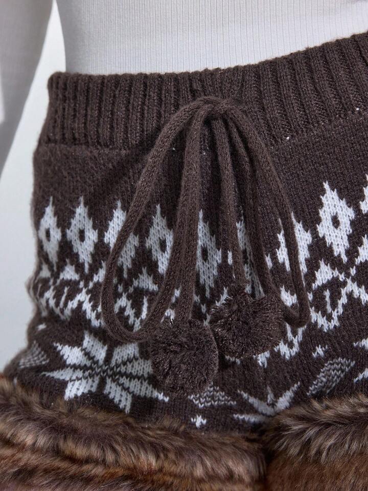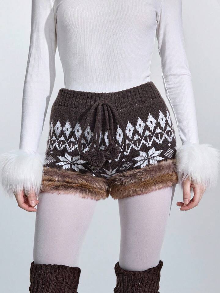 ROMWE Avant Fair Isle Knit Jacquard Knitted Blend Low Waist Women Shorts