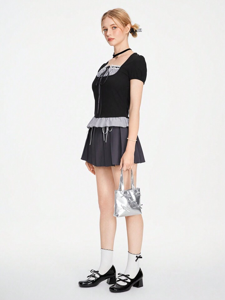 ROMWE Avant Fashionable And Portable Bowknot Design Women's Large Capacity Tote Bag