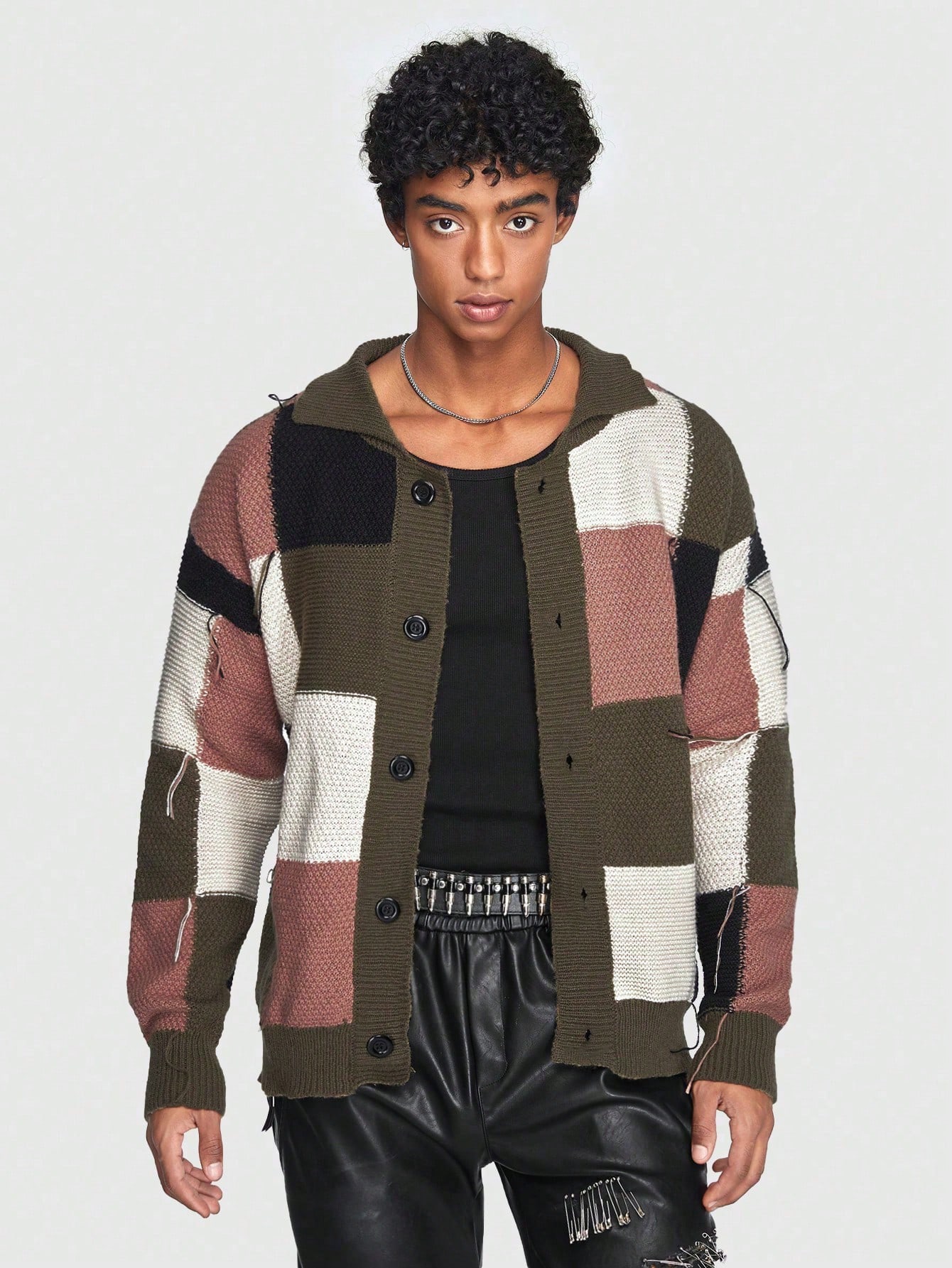 ROMWE Avant Guys Colorblock Button Front Cardigan