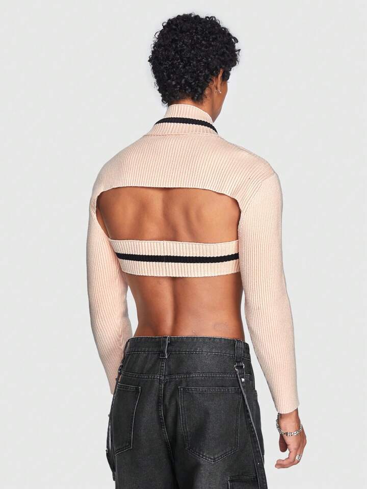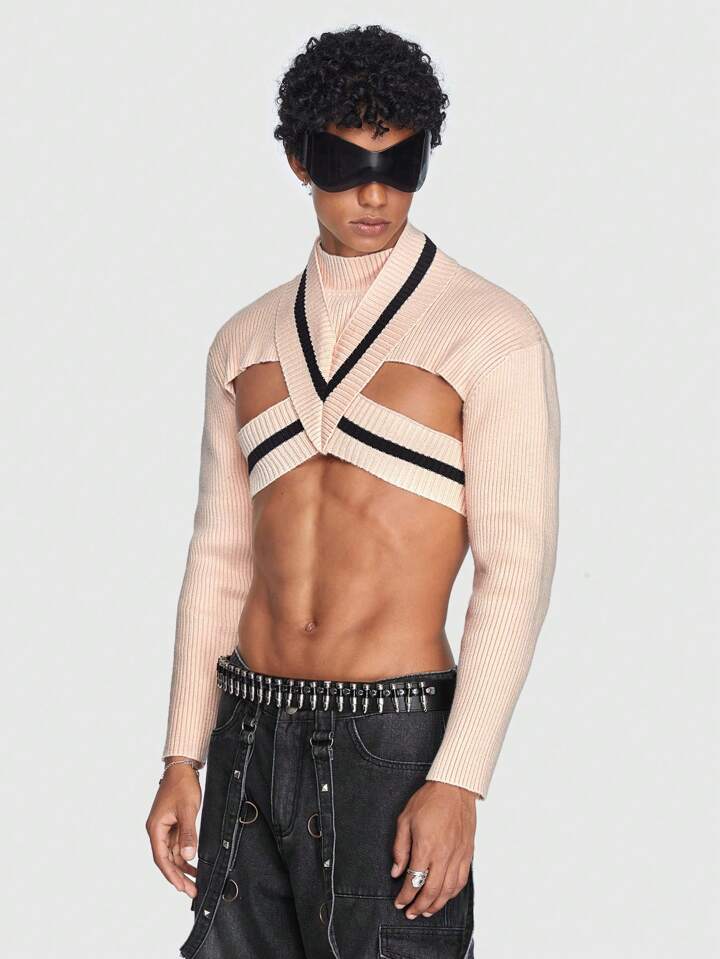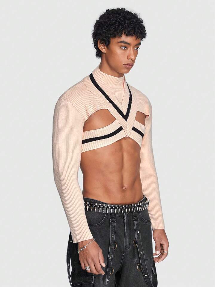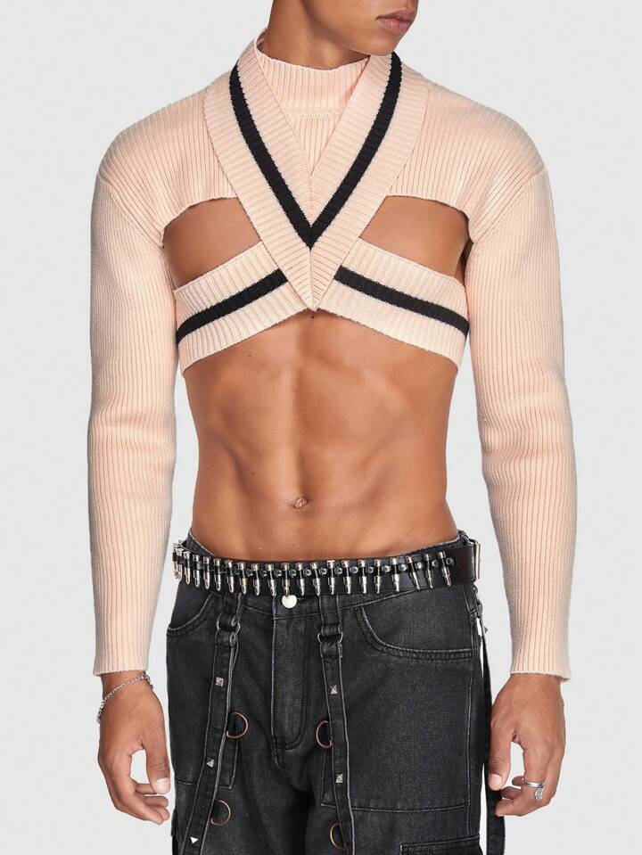 ROMWE Avant Guys Criss Cross Crop Sweater