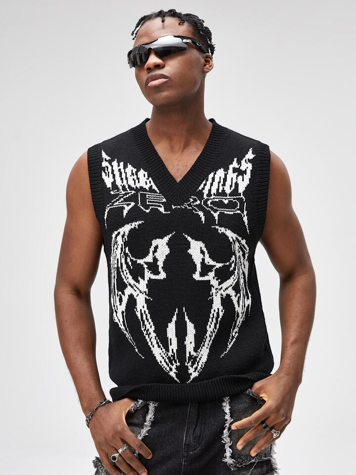 ROMWE Avant Guys Graphic Pattern Sweater Vest