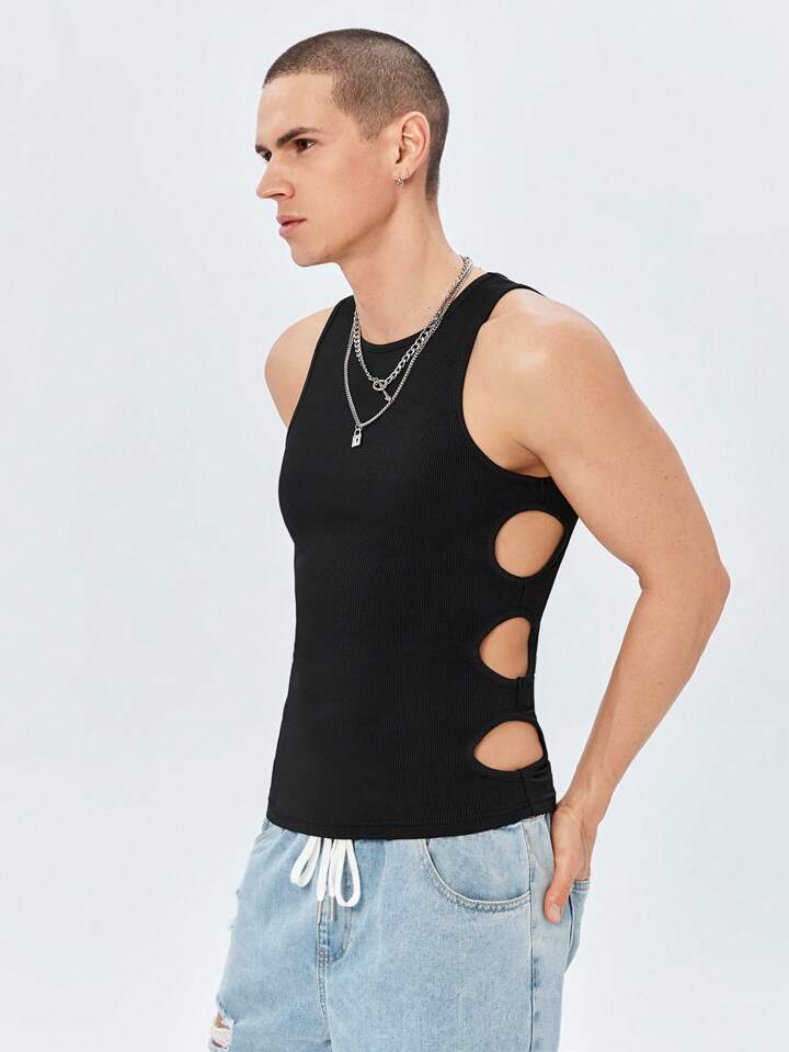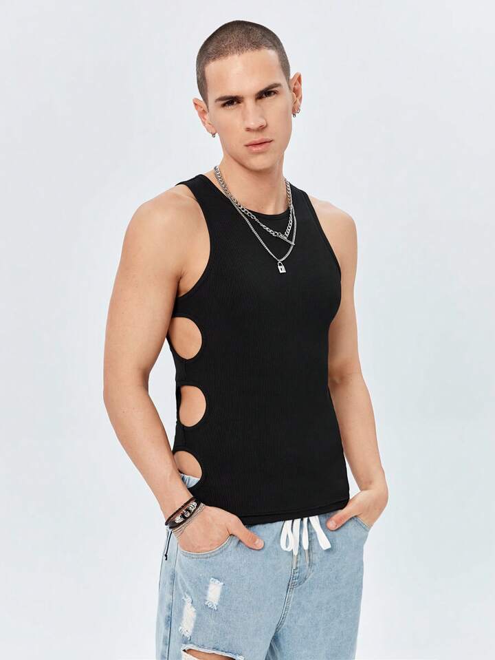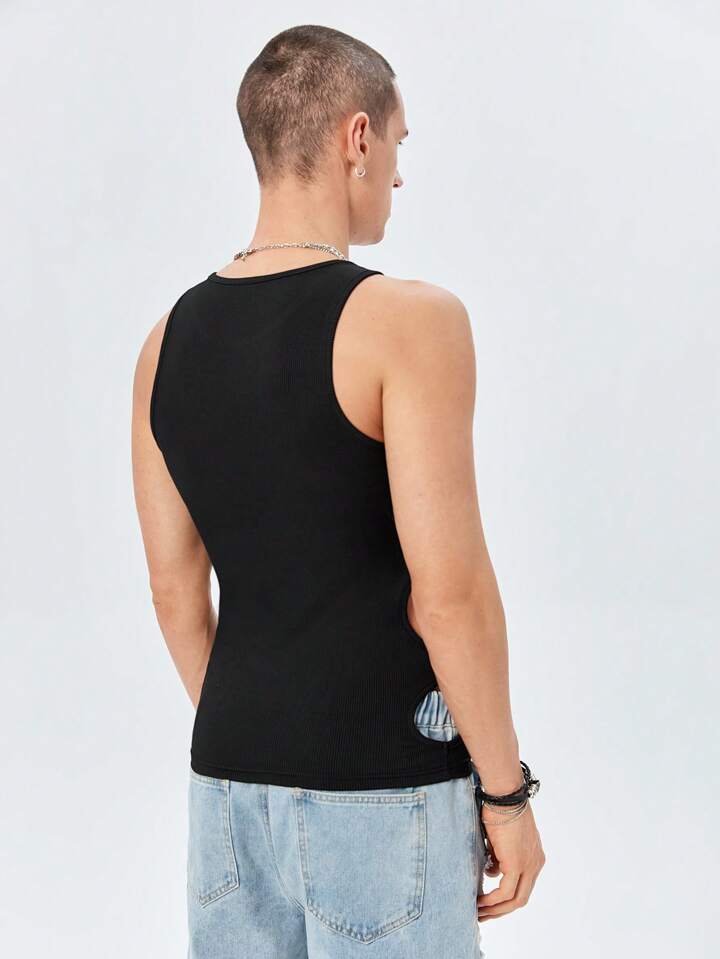 ROMWE Avant Guys Solid Cut Out Tank Top