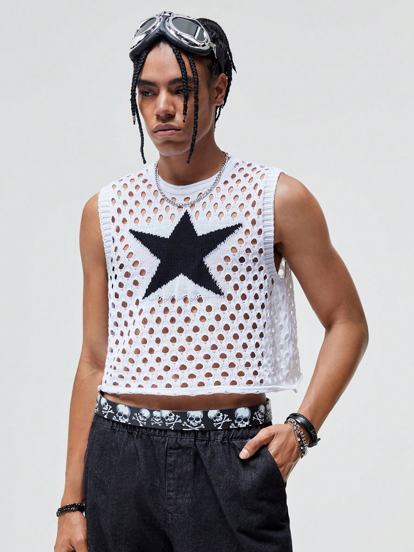 ROMWE Avant Guys Star Pattern Open Sweater Vest