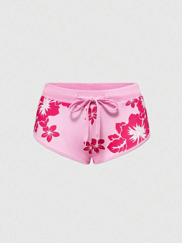 ROMWE Avant Gyaru Style Summer Cute Hibiscus & Dolphin Print Athletic Shorts For Women