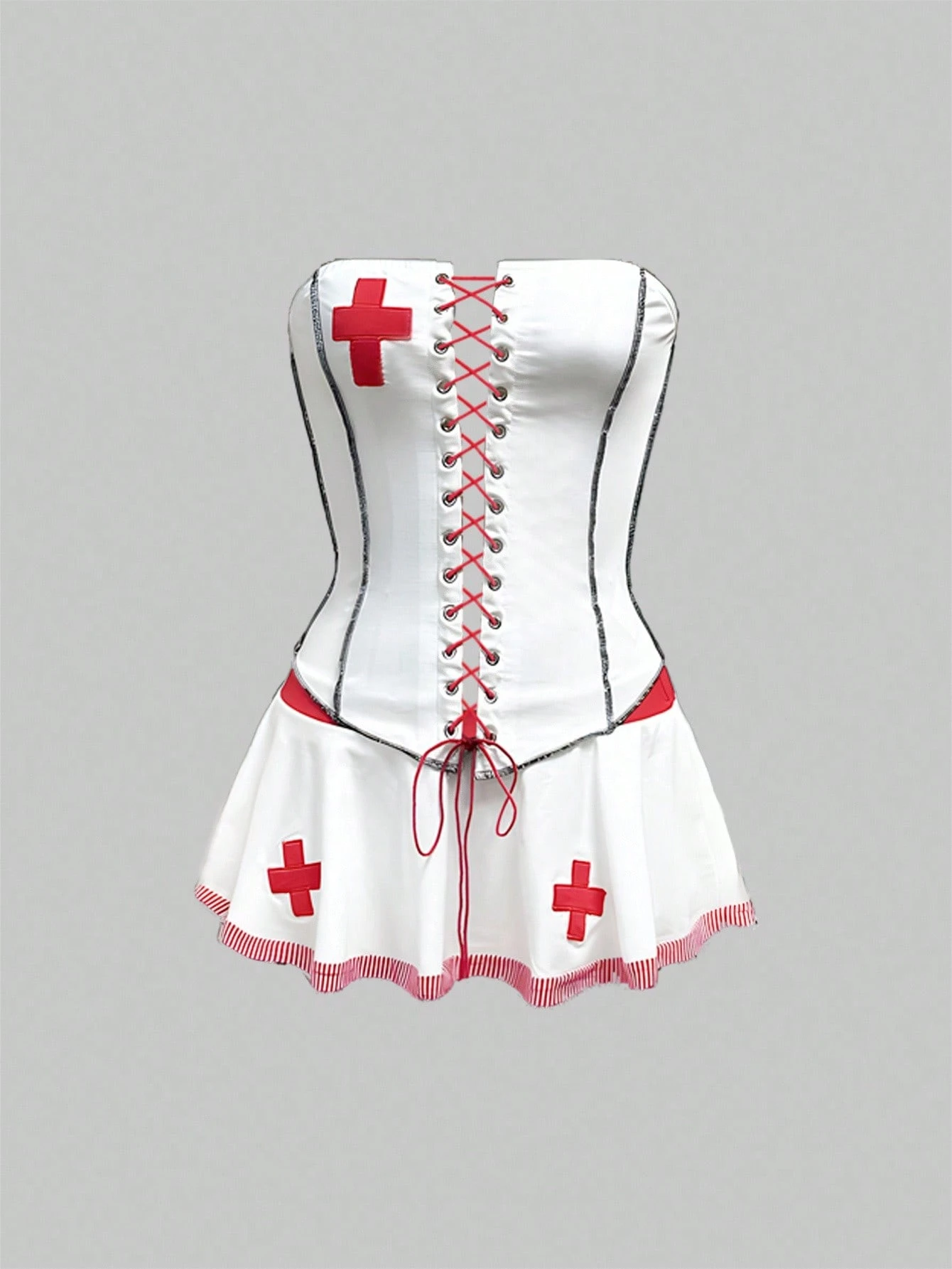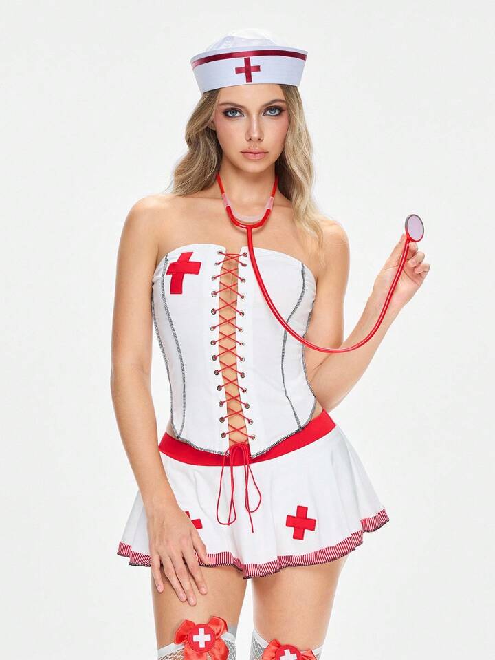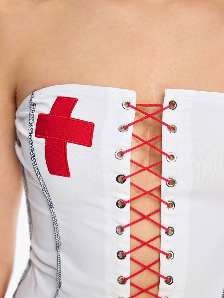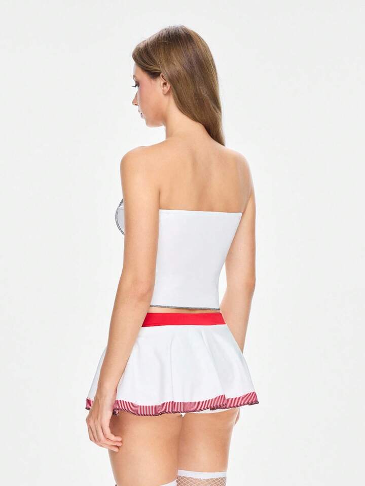 ROMWE Avant Halloween Sexy 2 Pieces Halter Crop Top And Mini Skirt Nurse Costume