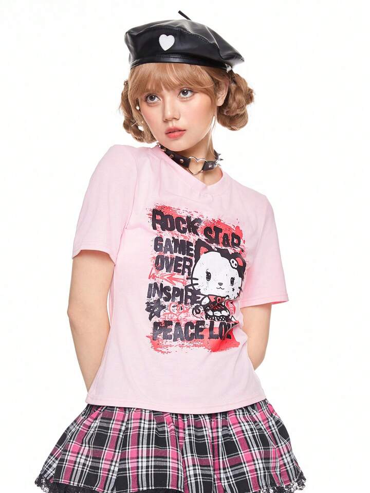 ROMWE Avant Letter & Animal Print Fitted T-Shirt