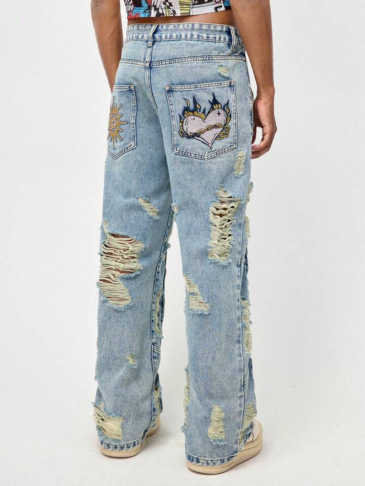 ROMWE Avant Men's Color Block Layered Bell Bottom Jeans With Metal Zipper