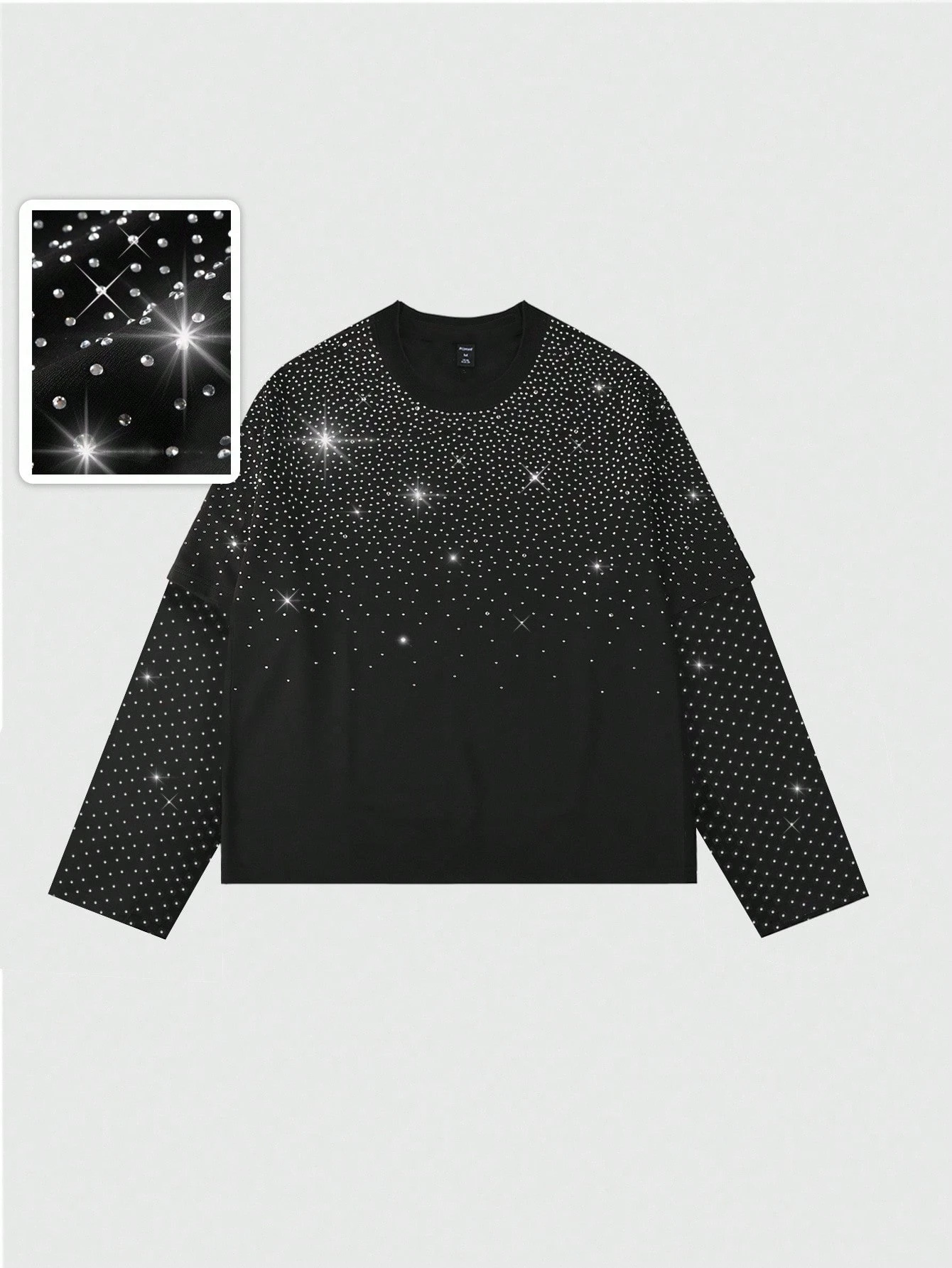 ROMWE Avant Men's Gradient Sparkling Diamond Print Loose Short T-Shirt, For Fall