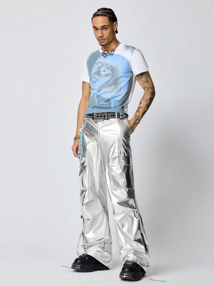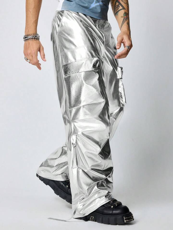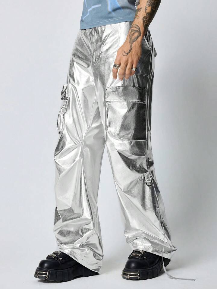 Street Life Men's Y3K Avant Silver Cargo Pleated Loose Street Casual Pants