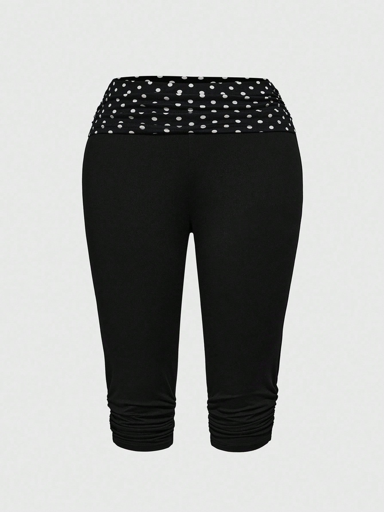 ROMWE Avant Plus Size Millennium Sicilian Holiday Vintage Polka Dot Patchwork Ruched Skinny Women Capri Pants