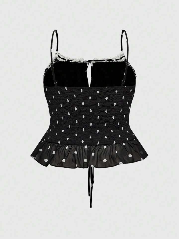 ROMWE Avant Plus Size Sicilian Vacation Retro Polka Dot Hollow Lace-Up Multilayer Camisole