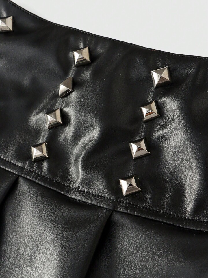 ROMWE Avant Punk Rivet Decorated Low-Waist Pleated Women's Kpop Mini Skirt, Music Festival Style