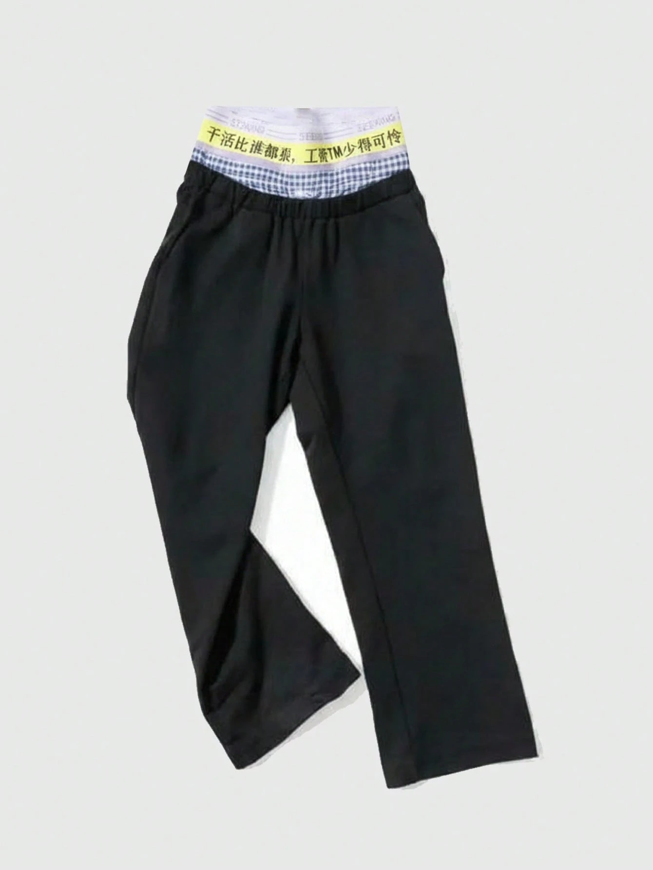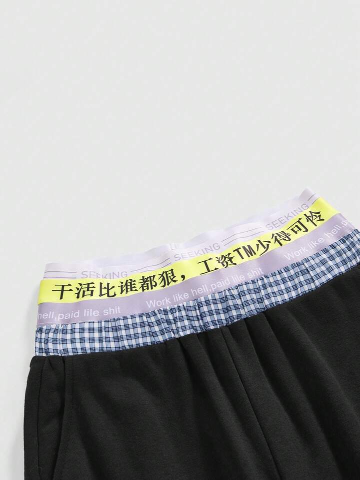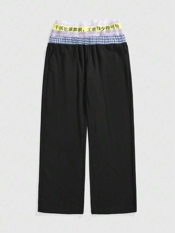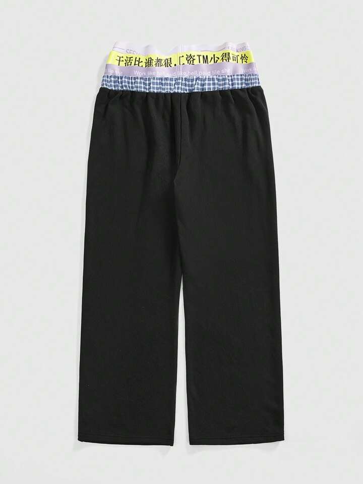 ROMWE Avant Slogan Patchwork Waistband Loose Casual Sweatpants