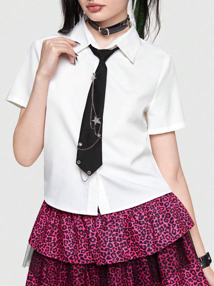 ROMWE Avant Solid Button Front Shirt Without Necktie