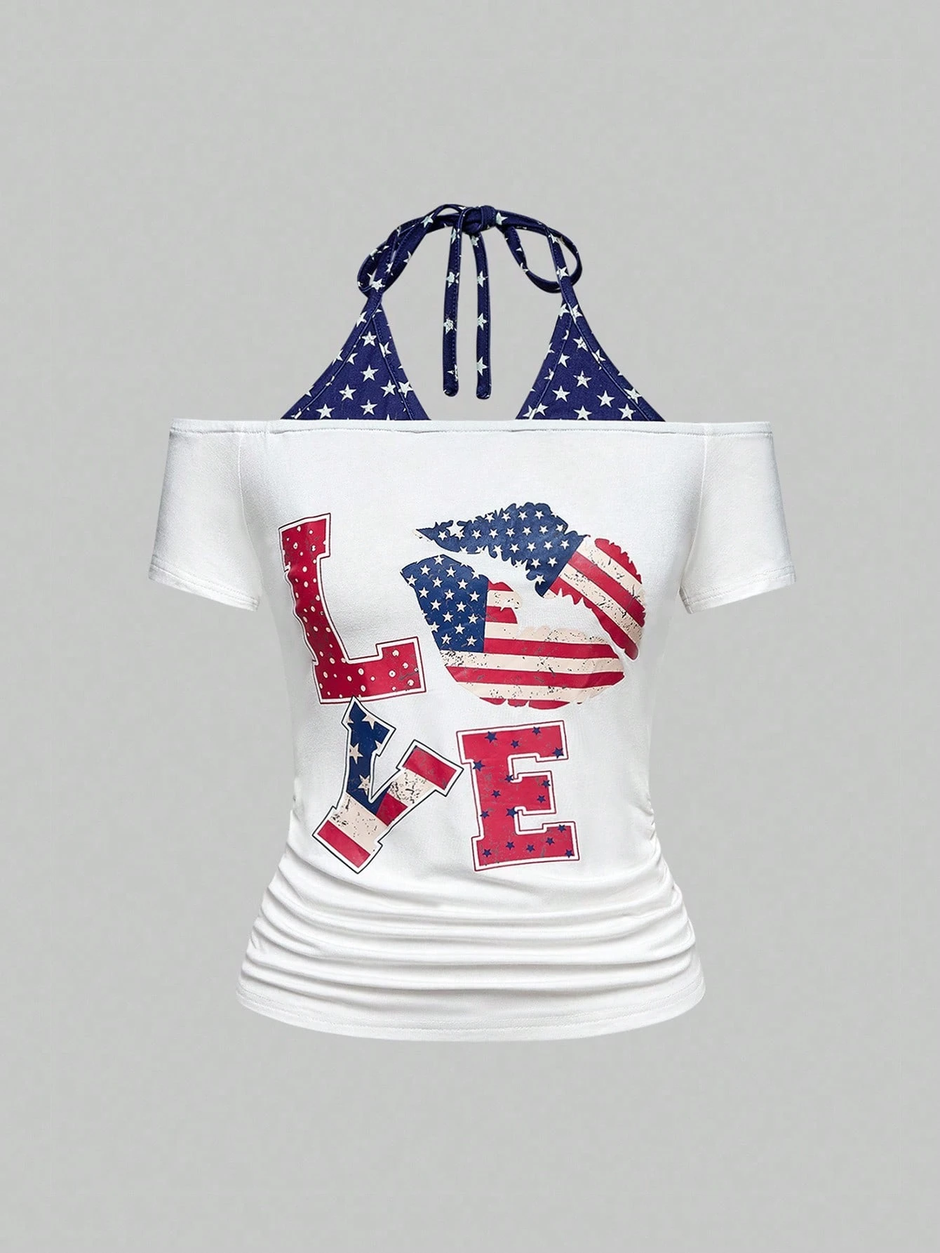 ROMWE Avant Union Jack & Sexy Lips Graphic Off Shoulder Tee