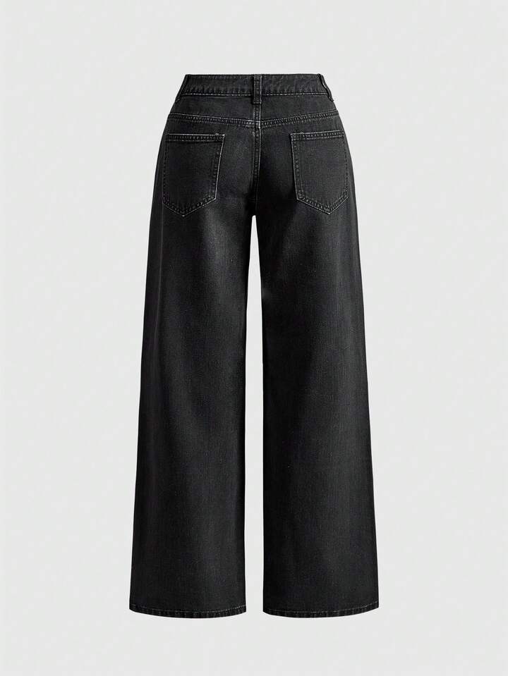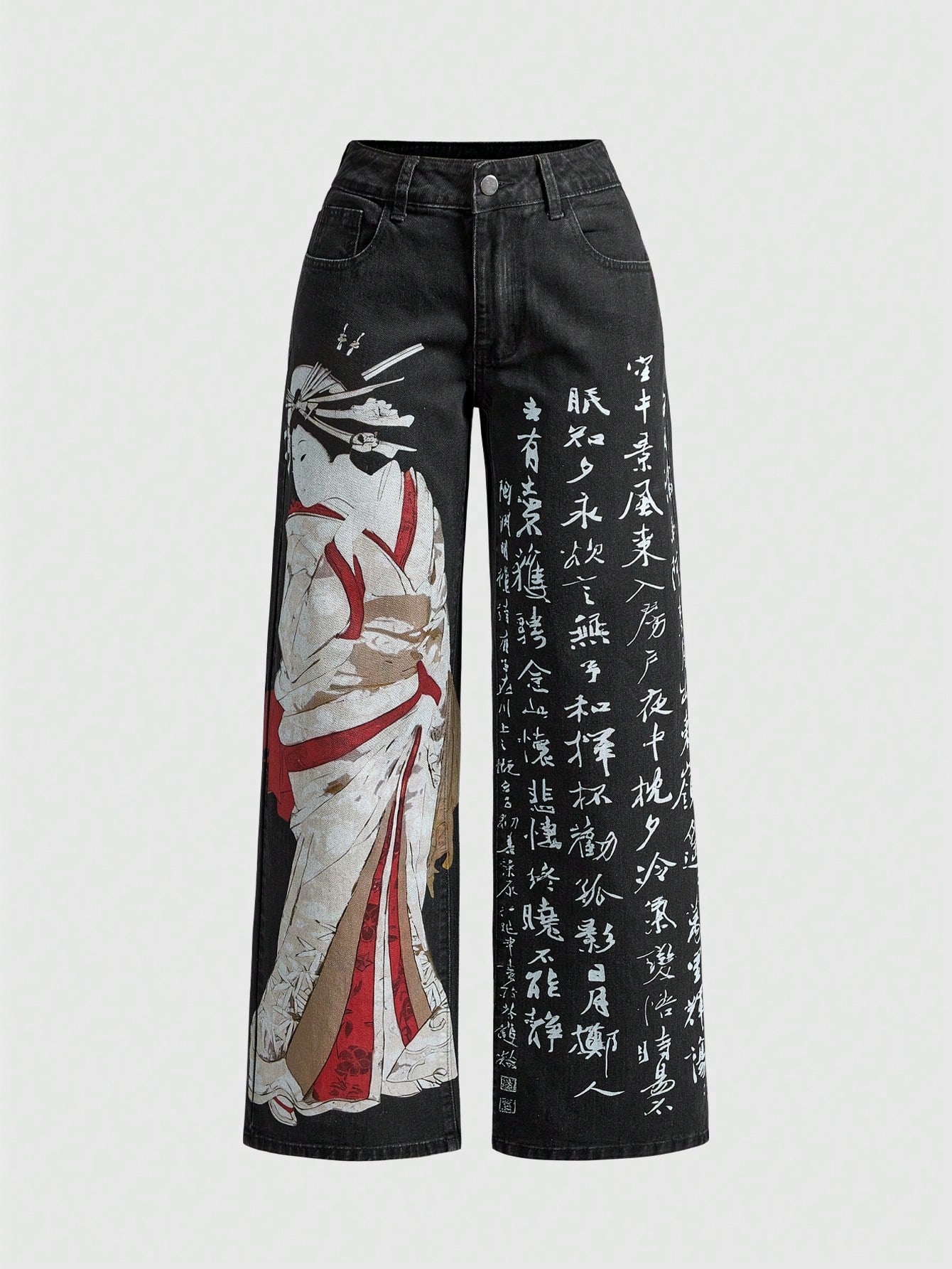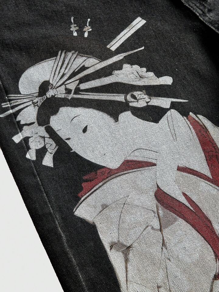 Unisex All-Match Casual Denim Jeans With Geisha Pattern, Versatile For Women And Men