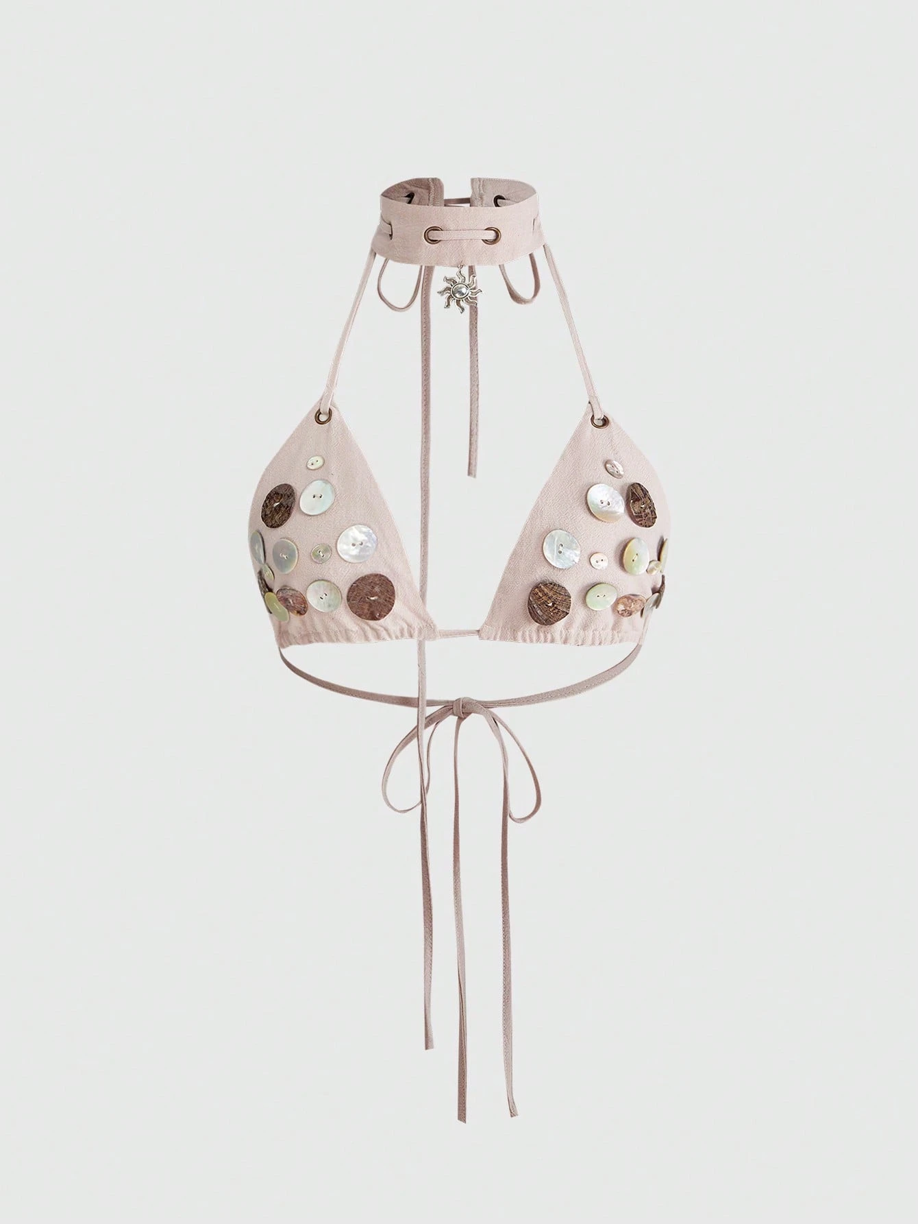 ROMWE Avant Vintage Cottagecore Style Shell Decor Sexy Halter Neck Tank Top For Music Festival
