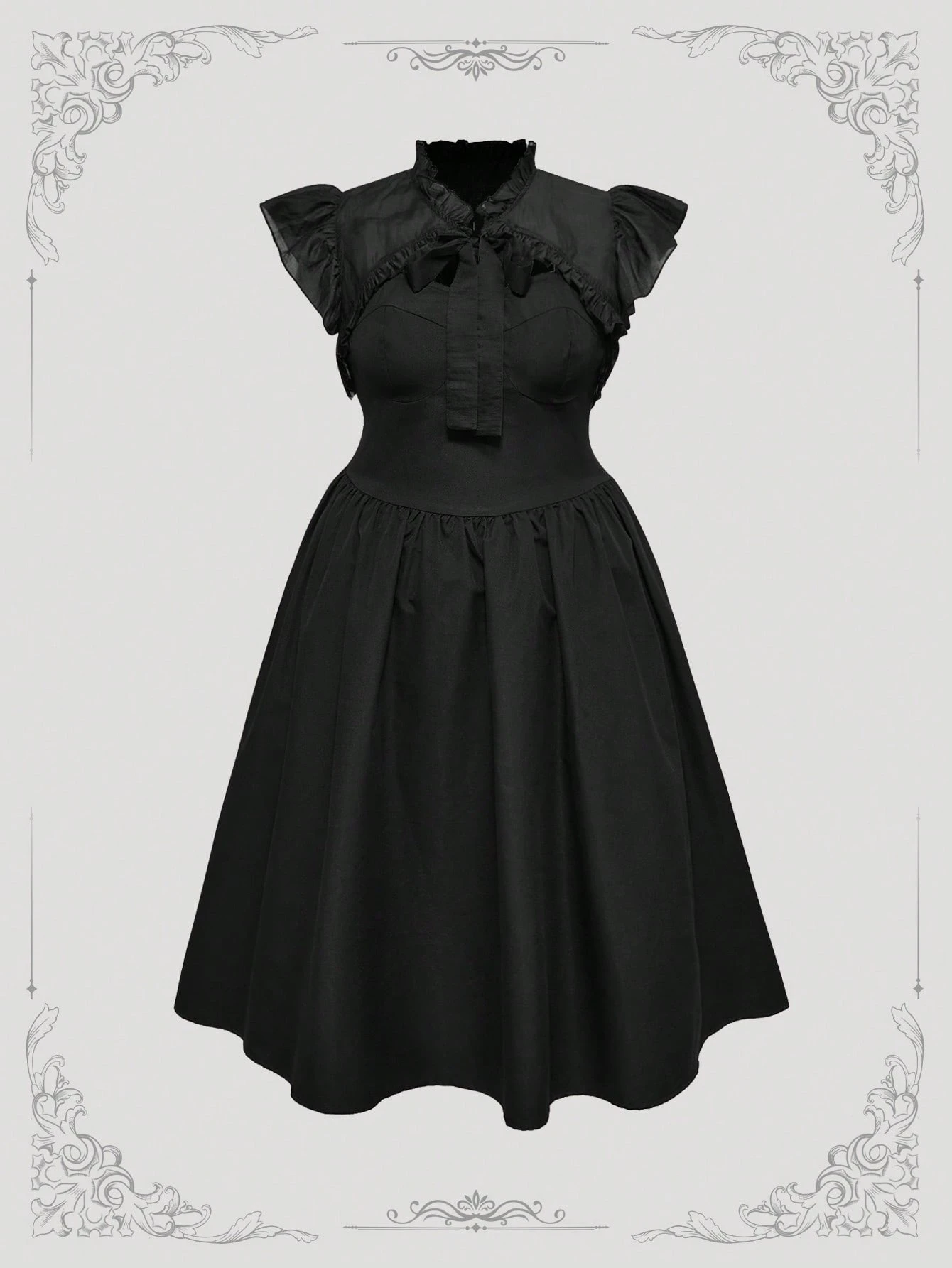 ROMWE Avant Vintage Floral Elegant Plus Size Women Tube Dress + Drawstring Cover Up Two-Piece Set
