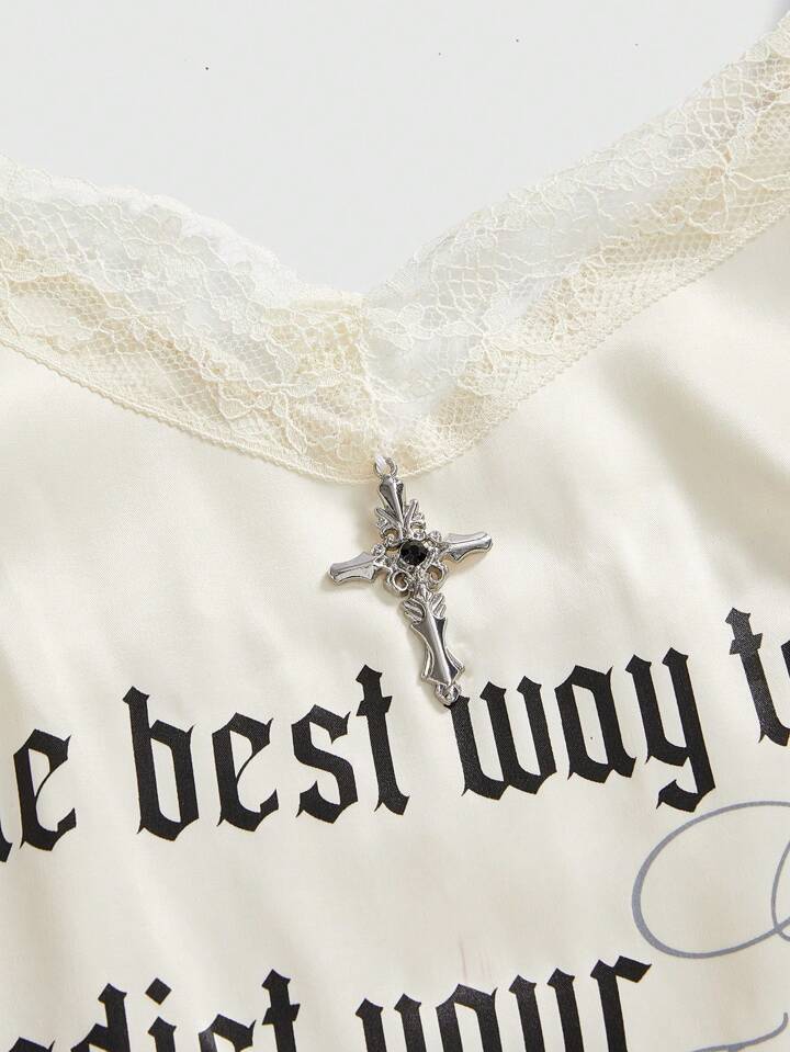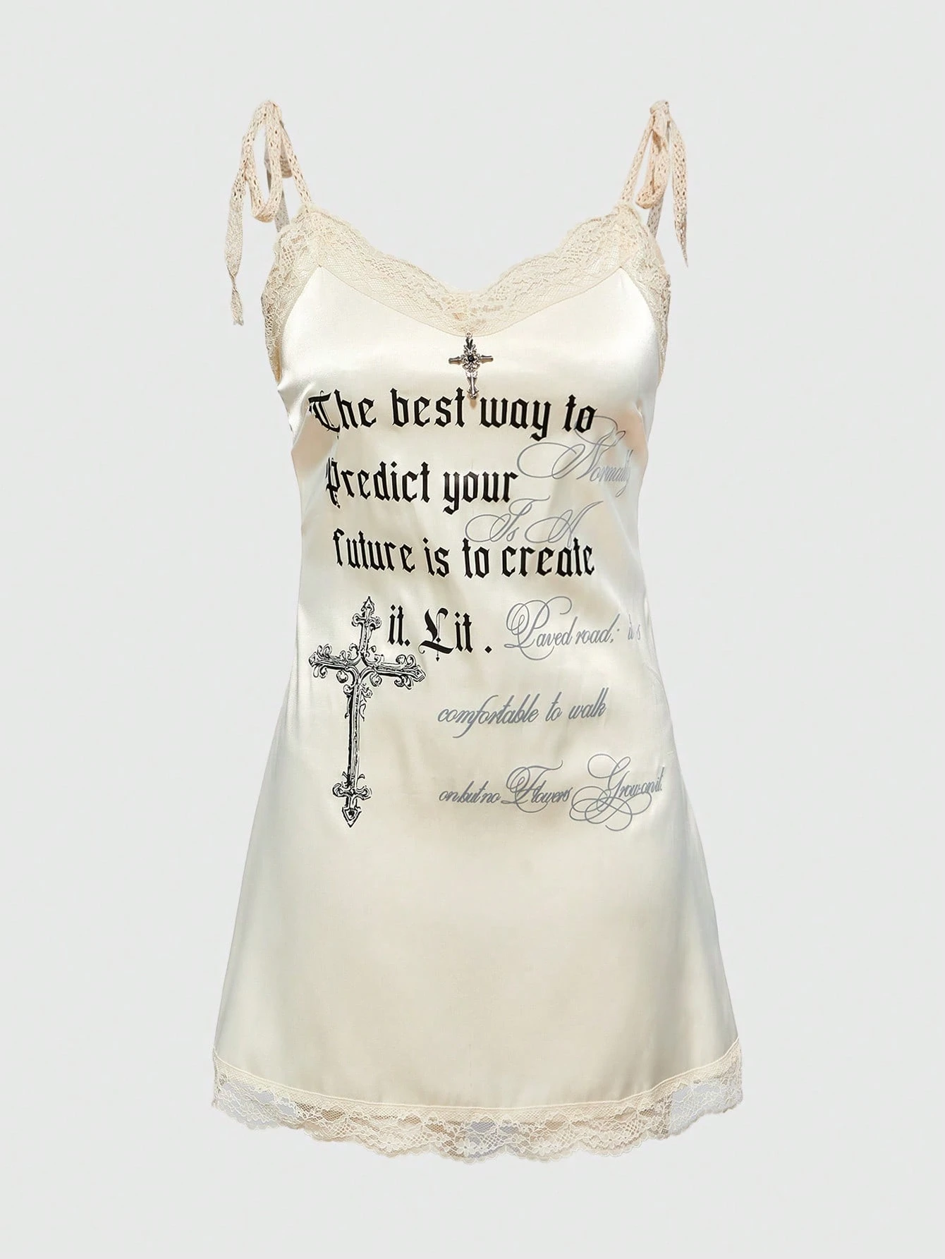 ROMWE Avant Women Angel Cross Printed Satin Mini Dress