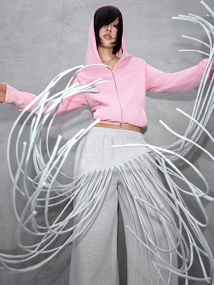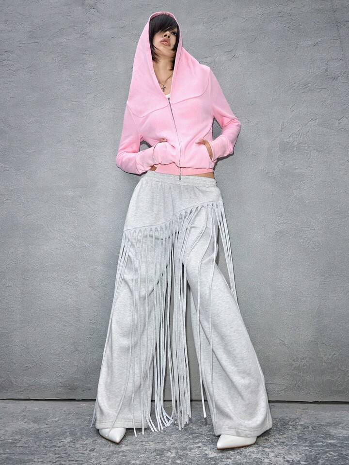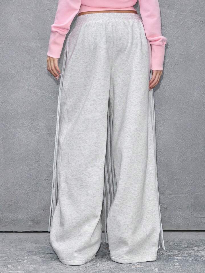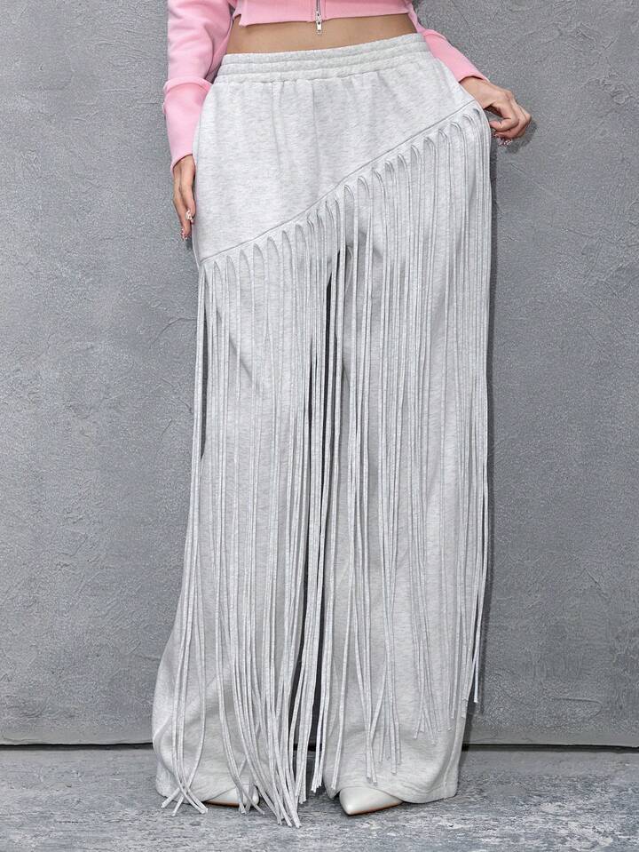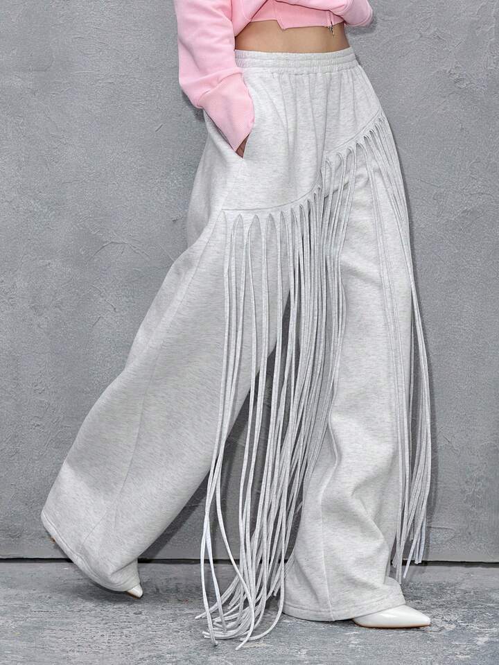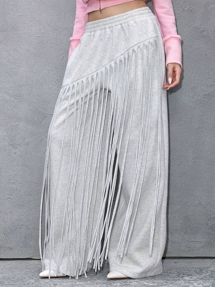ROMWE Avant Women's Asymmetrical Fringe Straight Loose Sweatpants