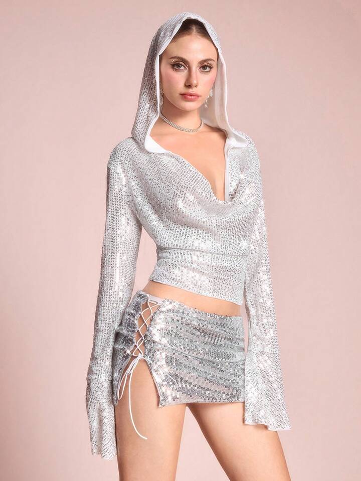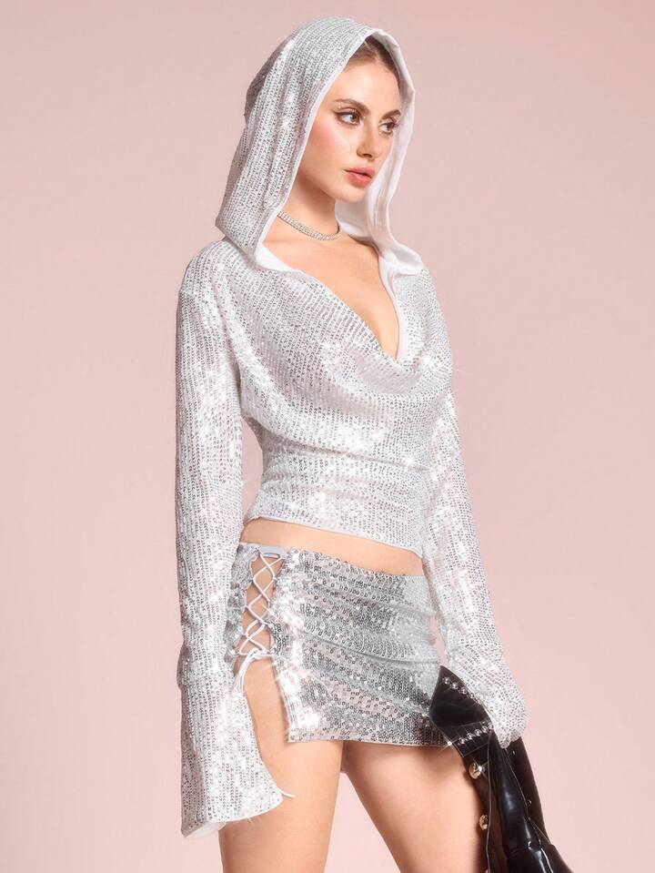 ROMWE Avant Women's Music Party Hooded Long Sleeve T-Shirt