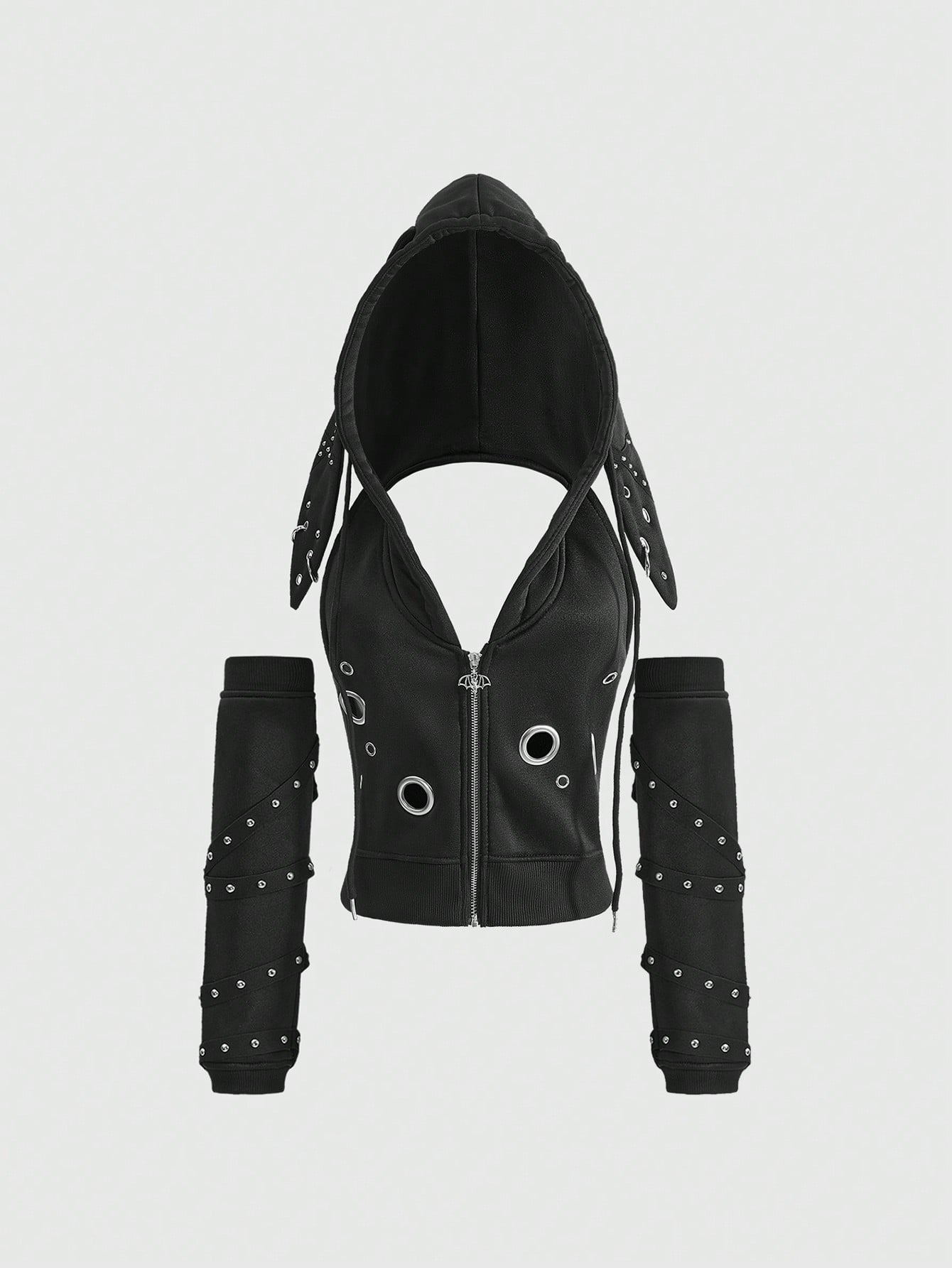 ROMWE Avant Women's Retro Subculture Punk Rock Bunny Ear Rivet Decor Splice Sleeveless Top