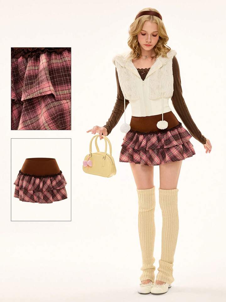 ROMWE Avant Women's Retro Sweet Heart Patchwork Low Waist Mini Skirt